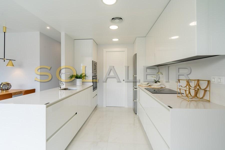 Las cocinas están completamente equipadas e incluyen electrodomésticos como campana extractora, horno, placa de inducción, frigorífico, lavavajillas, lavadora, microondas, fregadero.