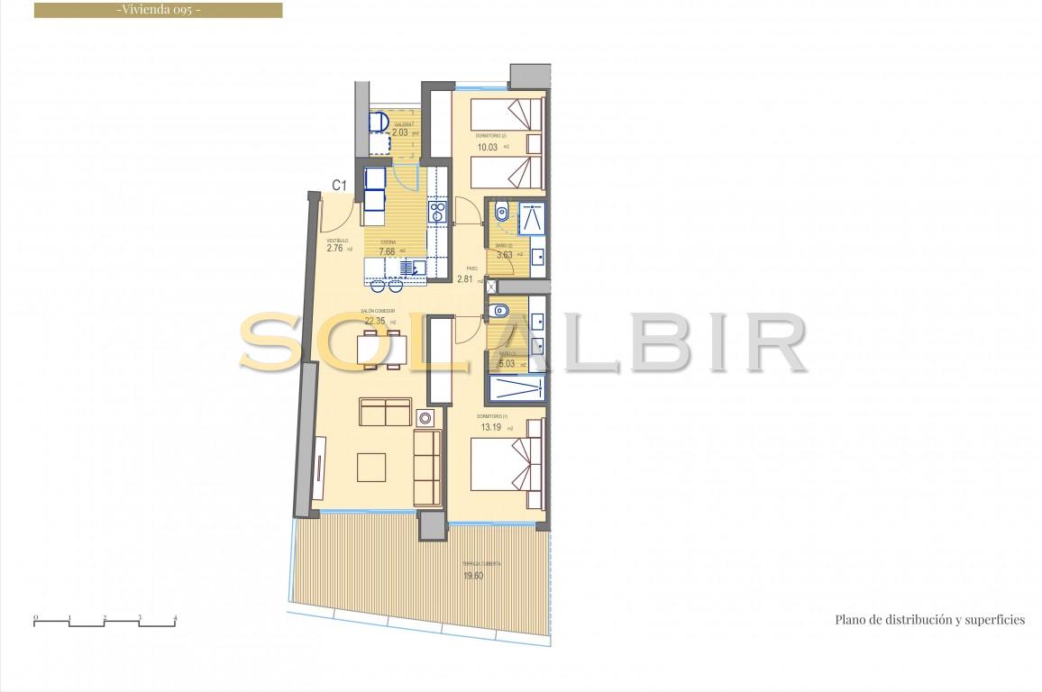 Baños con ducha. Dormitorios con armarios empotrados y puertas correderas. Entrada al apartamento con puerta de seguridad.