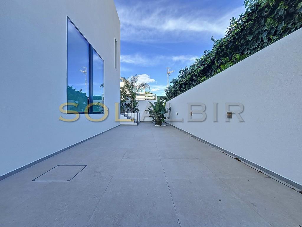 Nos complace presentarles esta impresionante villa adosada de nueva construcción, lista para entrar a vivir y amueblada, en Albir. Ubicada en una zona llana cerca del centro, supermercados y centro médico, se encuentra a solo 15 minutos a pie de la playa.