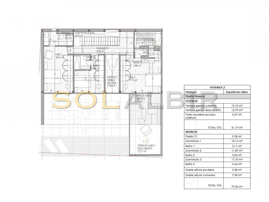 Desde la primera planta, una escalera exterior conduce a una generosa terraza en la azotea de 90m², que ofrece espectaculares vistas a Serra Gelada y Puig Campana.