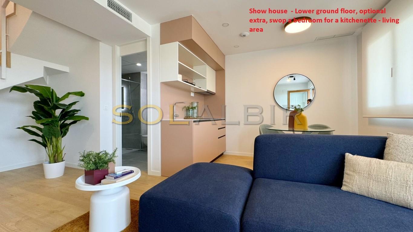 - Posibilidad adicional opcional de convertir la planta baja en un apartamento independiente de 1 dormitorio, de modo que en lugar de un 4º dormitorio, este dormitorio se pueda convertir en una sala de estar con cocina americana y entrada independiente. (ideal para un piso de un familiar, familias con adolescentes que quieran independencia, o tal vez para alquilar a largo plazo para obtener ingresos adicionales)