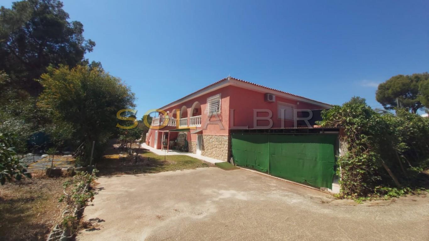 Dispone de 4 dormitorios , el principal con terraza cubierta y acceso directo al jardín. Además, cuenta con 3 baños. La cocina es independiente y cuenta con espacio para el comedor diario. Garaje para 1 coche y aparcamiento cubierto adicional. En el exterior se encuentra la barbacoa, un aseo con ducha en el jardín y un amplio trastero . La fantástica parcela es llana y cuenta con árboles frutales, con un ambiente rural, pero en una urbanización céntrica. Aunque la villa necesitaría una pequeña reforma estética, es una villa magnífica.