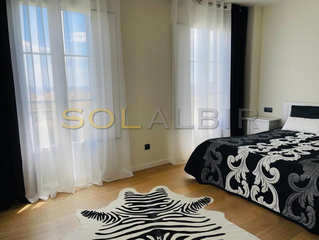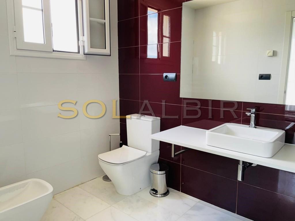 En la primera planta hay tres amplios dormitorios y tres cuartos de baño completos y modernos. Cada dormitorio con su propio cuarto de baño. El suelo es de parquet en la primera planta. Dispone de balcones frontales con espléndidas vistas y muy soleados.