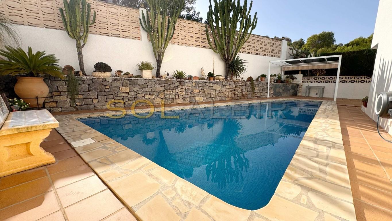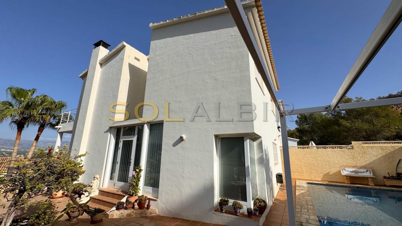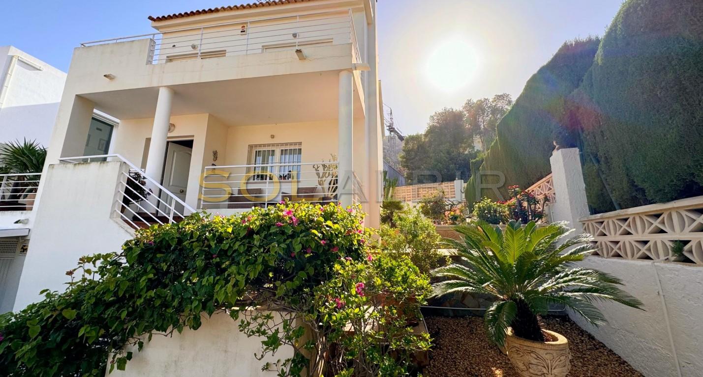 Exclusiva de Solalbir, enclavada en la zona alta del Albir, esta encantadora villa ofrece impresionantes vistas panorámicas de la costa. La propiedad está conectada con la casa vecina únicamente a través del garaje, lo que garantiza su privacidad.