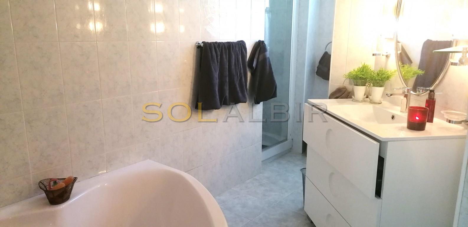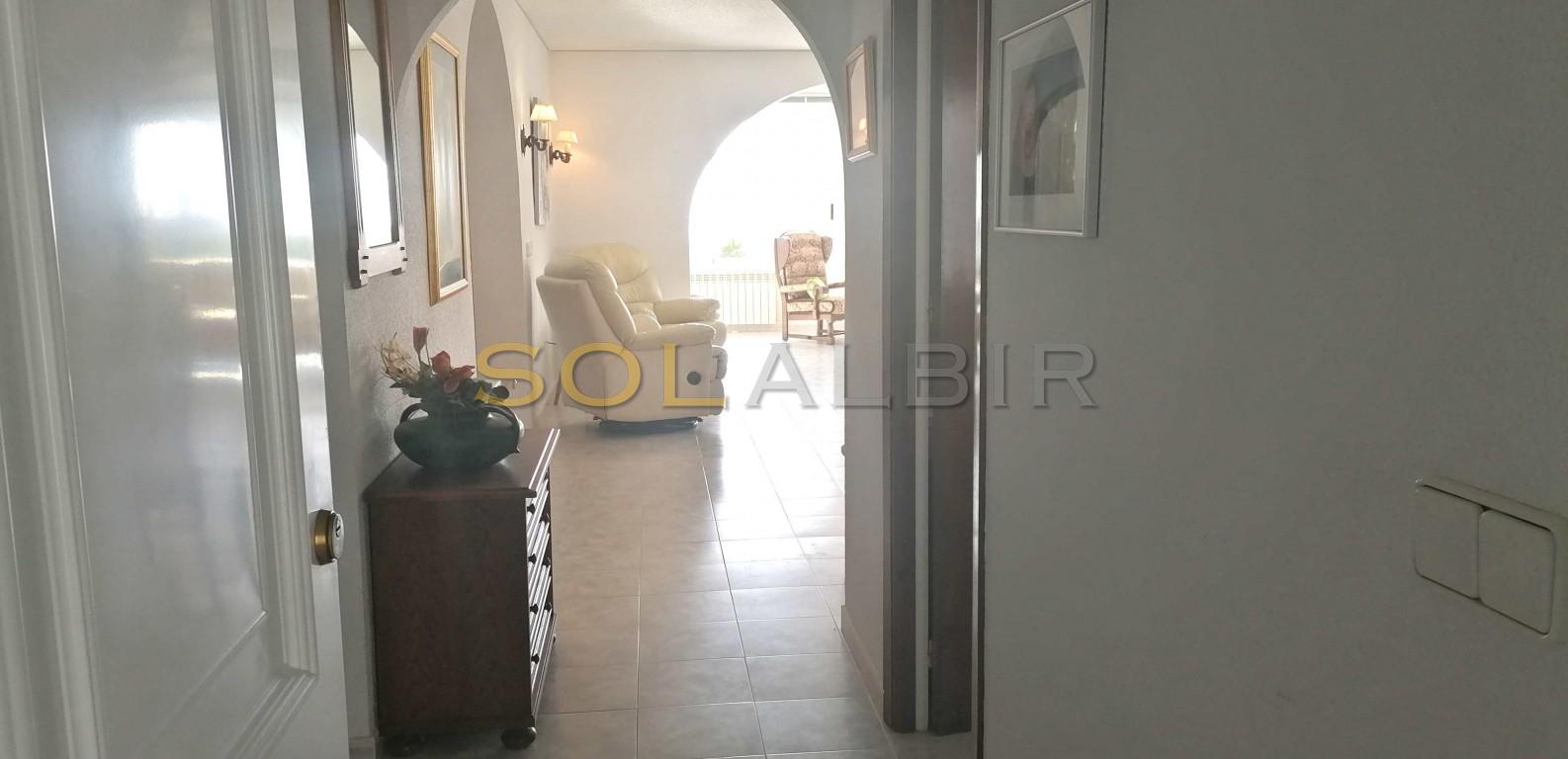 Esta propiedad se distribuye en dos plantas con dos amplios apartamentos independientes. Se trata de una villa orientada al sur. La casa principal consta de recibidor, un luminoso salón-comedor con fantásticas vistas panorámicas, cocina, tres dormitorios, un amplio baño y un aseo. Desde el salón se accede por una escalera a la zona de la piscina. Los apartamentos de invitados se encuentran en la planta baja, al mismo nivel que la zona de la piscina. El apartamento más grande ha sido recientemente renovado y consta de salón-comedor con cocina abierta, dos dormitorios y dos baños. El segundo apartamento consta de salón-comedor, cocina independiente, dos dormitorios y un baño. Además, hay un trastero/lavadero y una ducha y un aseo en la zona de la piscina. La zona exterior disfruta de sol todo el día, es de fácil mantenimiento y consta de una gran piscina y una zona de barbacoa. También hay un amplio garaje.
