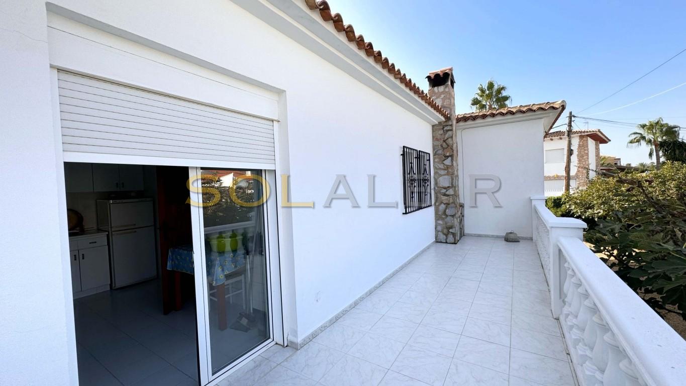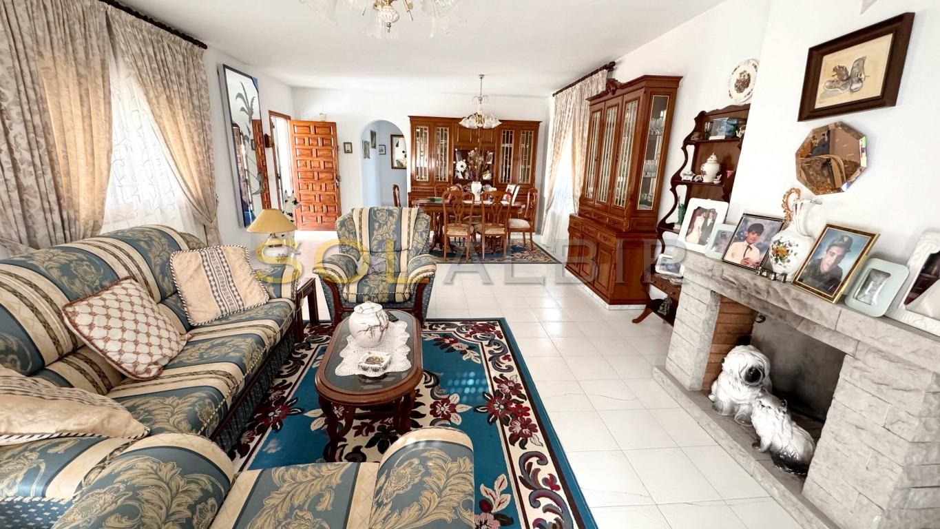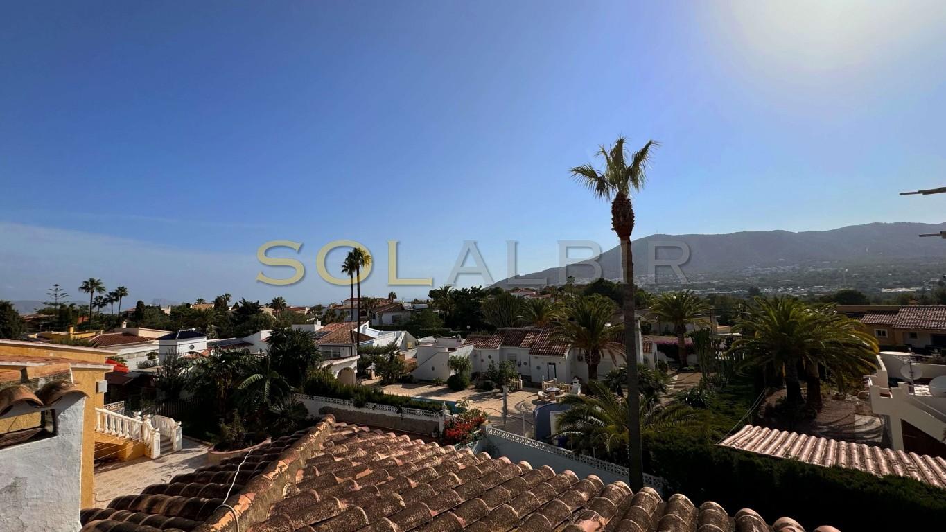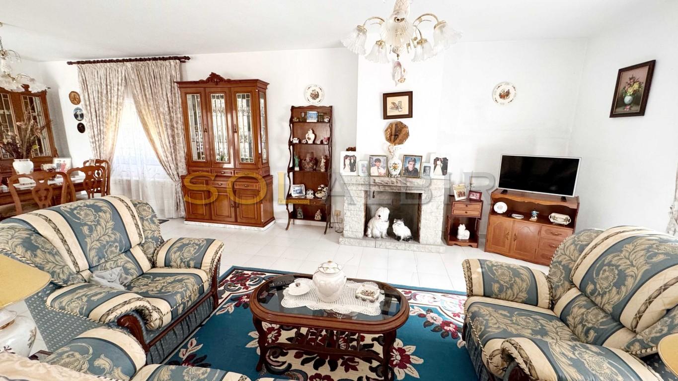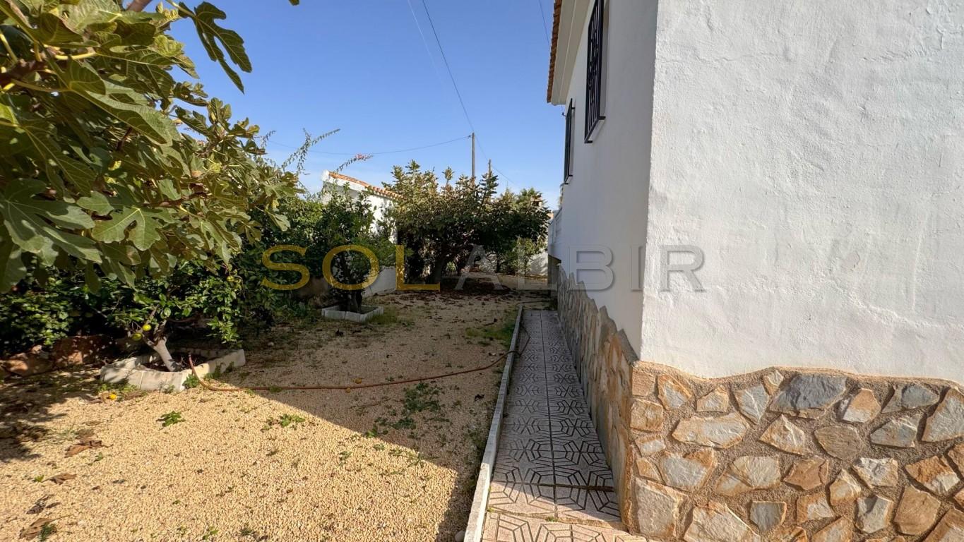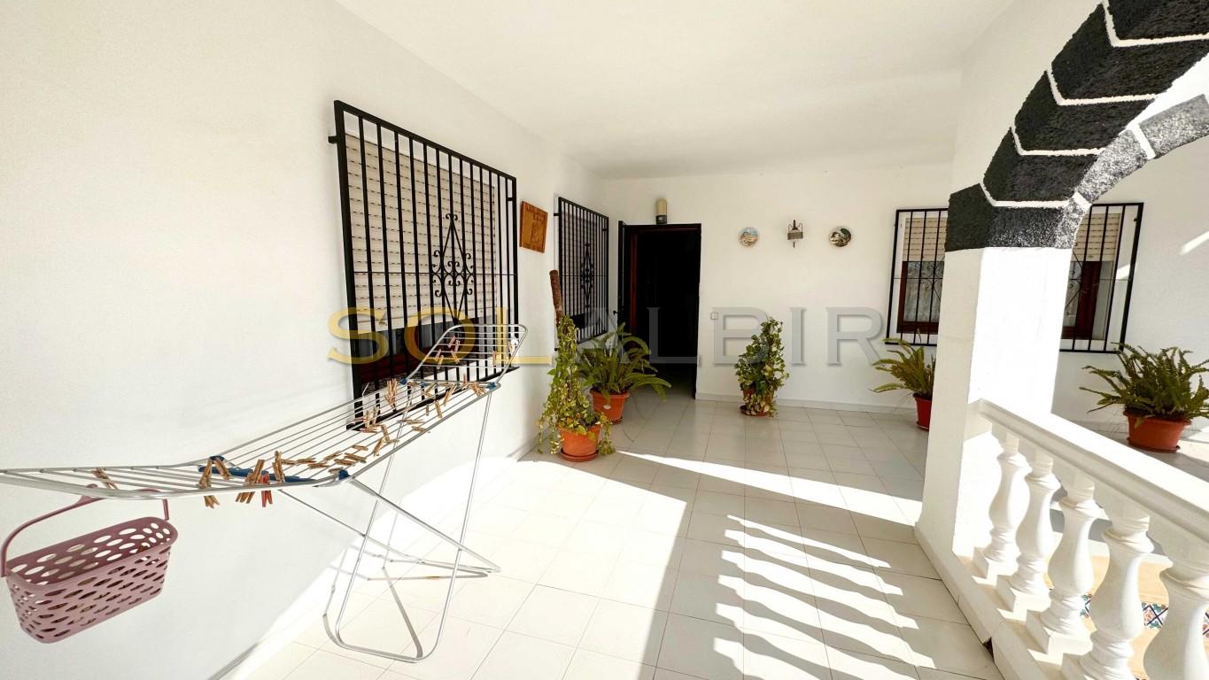 La casa principal, subiendo unas escaleras desde las que se disfruta de unas preciosas vistas panorámicas a las montañas y a la costa, está rodeada en la parte delantera por una gran terraza cubierta , desde la que hay otra pequeña terraza en la azotea a la que se accede por una escalera de caracol. Una vez en el chalet, se accede a un salón comedor muy espacioso con una acogedora chimenea. La cocina cerrada está equipada y también da a otra terraza en la parte trasera de la casa.