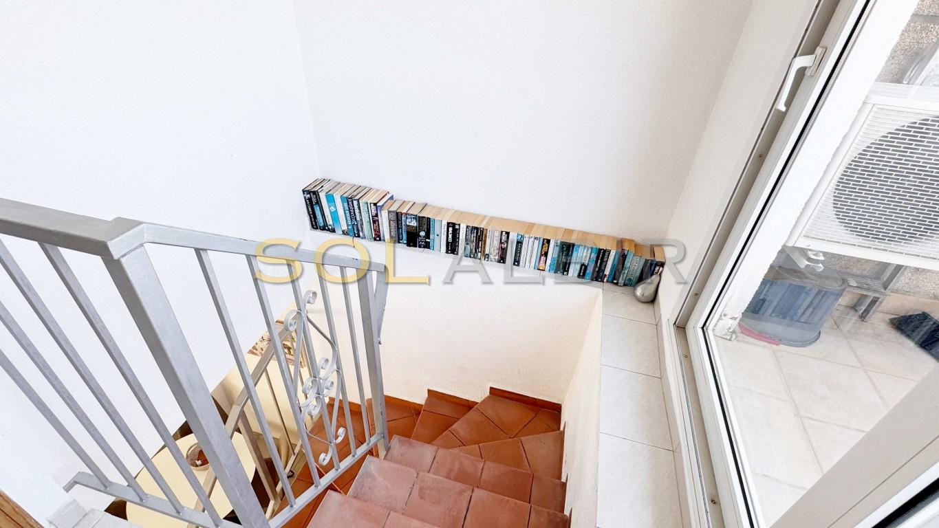 Presentamos un apartamento dúplex reformado de 2 dormitorios , al que se accede por una escalera hasta la entrada principal. En la parte delantera, encontrará un balcón privado con sol de mañana, ideal para disfrutar del desayuno. En esta planta baja, al entrar, se encuentra el salón, donde también encontrará una cocina cerrada totalmente equipada y un dormitorio con armarios empotrados.