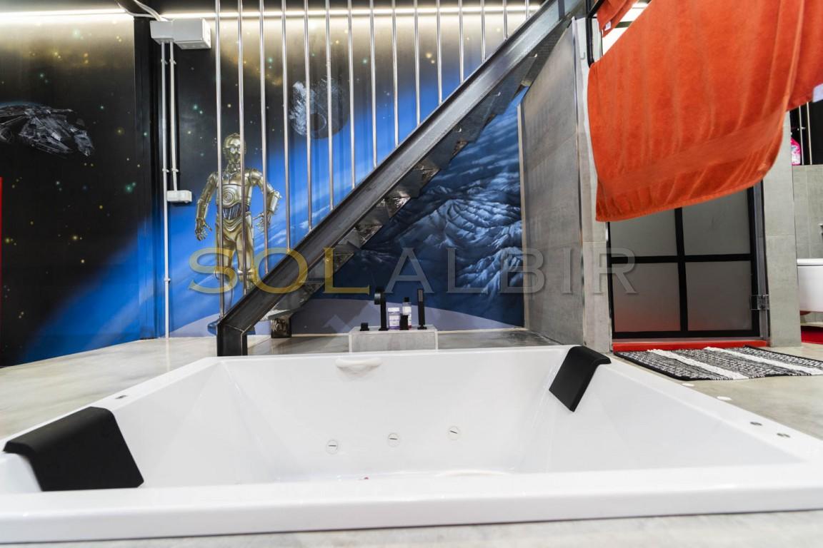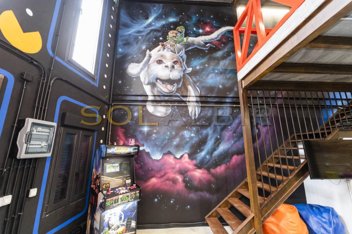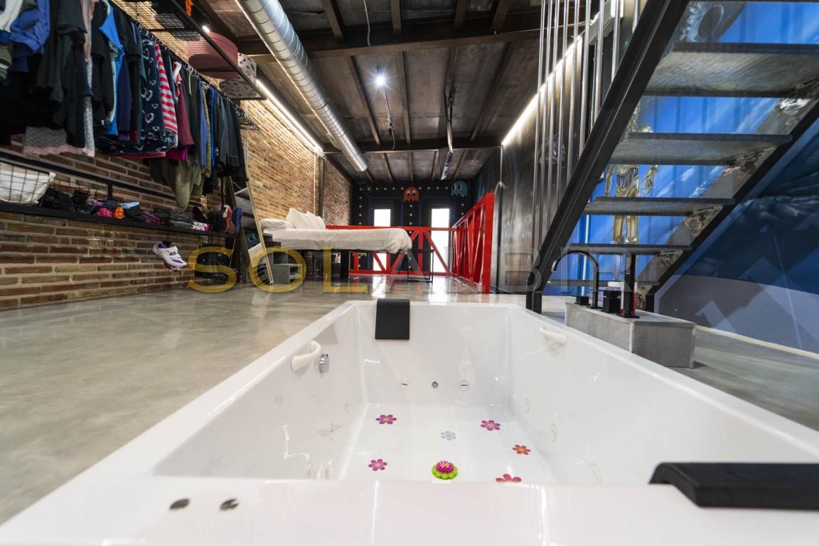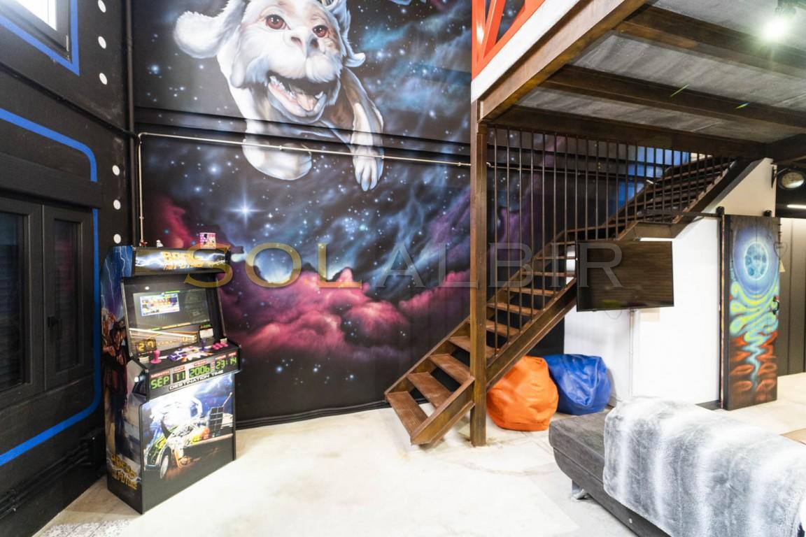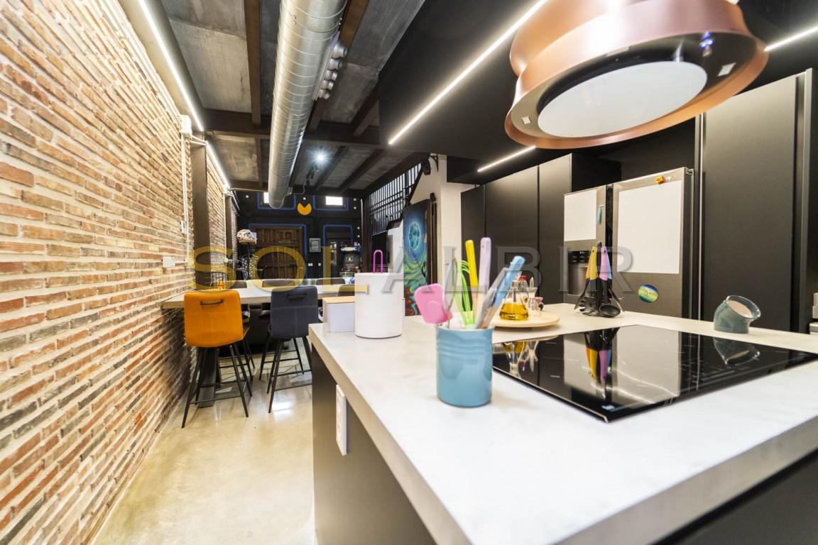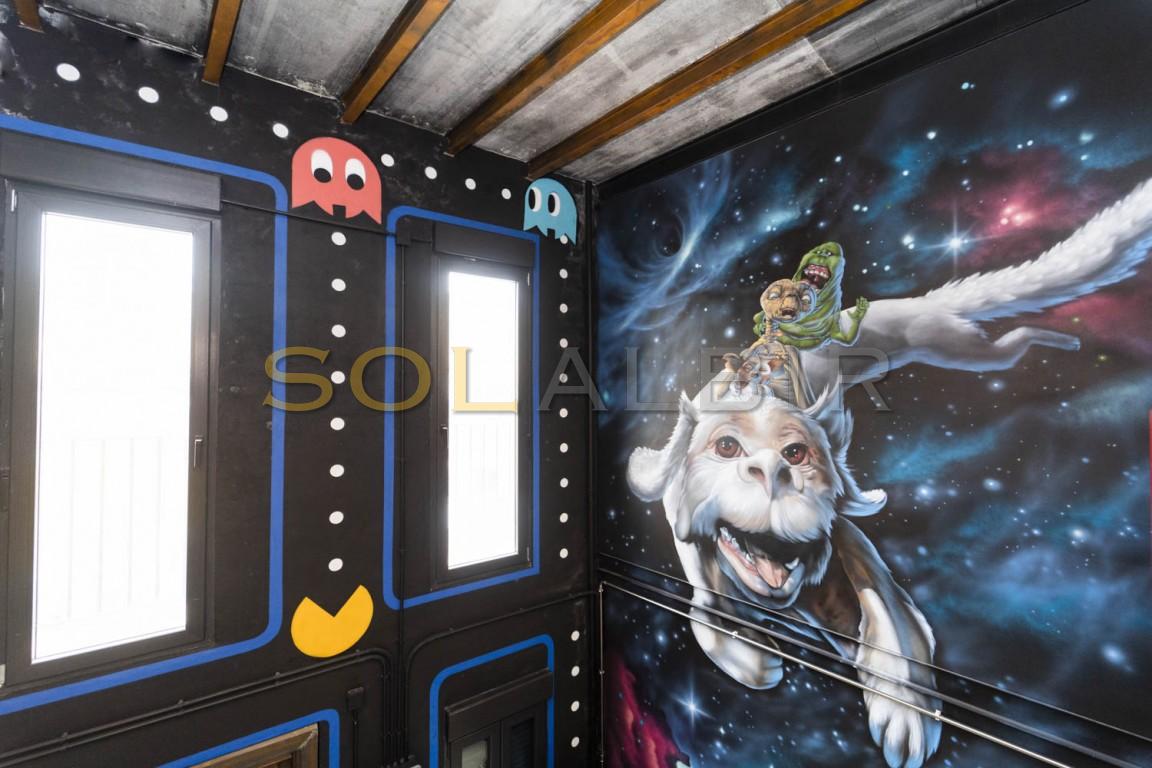 En cuanto a las características de la casa cabe destacar;- Loft de 3 Pisos de Exclusivo Diseño Industrial con Estructura de Pilares y Vigas de Acero- Tematización Arcade y Graffitis Únicos de las Películas que Nos Hicieron Soñar en los 80!. Autor: El Picasso del Graffiti, Tom Rock!- Situado en el Casco Antiguo de Villajoyosa, junto al mar, a un paso de todos los servicios!- Jacuzzi de 2,00 x 1,20 en Planta Primera empotrado en el suelo desde el que podrás relajarte y ver tus películas favoritas en la TV giratoria de 65"- Techos Altos y Amplias Estancias para disfrutar permanentemente de la sensación de luz natural y amplitud.- Patio en Planta Baja con Pérgola de Madera, Gimnasio y Jardín Vertical. Posibilidad de hacer un Home Cinema de Verano o Taller Botánico- Cocina con isla de diseño único apta para preparar eventos en familia o con amigos.- Aire Acondicionado y Calefacción por conductos, ¡hasta 12.000 frigorías!- - Proyecto de Terraza-Solarium en Planta Tercera con posibilidad de hacer un dormitorio adicional o despacho- Retorno de Ahorro garantizado del 7%. Adjuntamos viabilidad detallada y contrastada ya que, desde hace años, también nos dedicamos a la explotación turística extrahotelera.- Mobiliario de Diseño; Cama de 200x200 con estructura flotante a medida, sofá chaise-longue de piel con cojines desenfundables y reposacabezas basculante, mesa alta de hormigón y madera con taburetes giratorios, armario abierto de gran capacidad, etc.- Licencia Turística (VT-502877-A): se puede empezar a explotar turísticamente el inmueble al día siguiente sin ningún inconveniente.