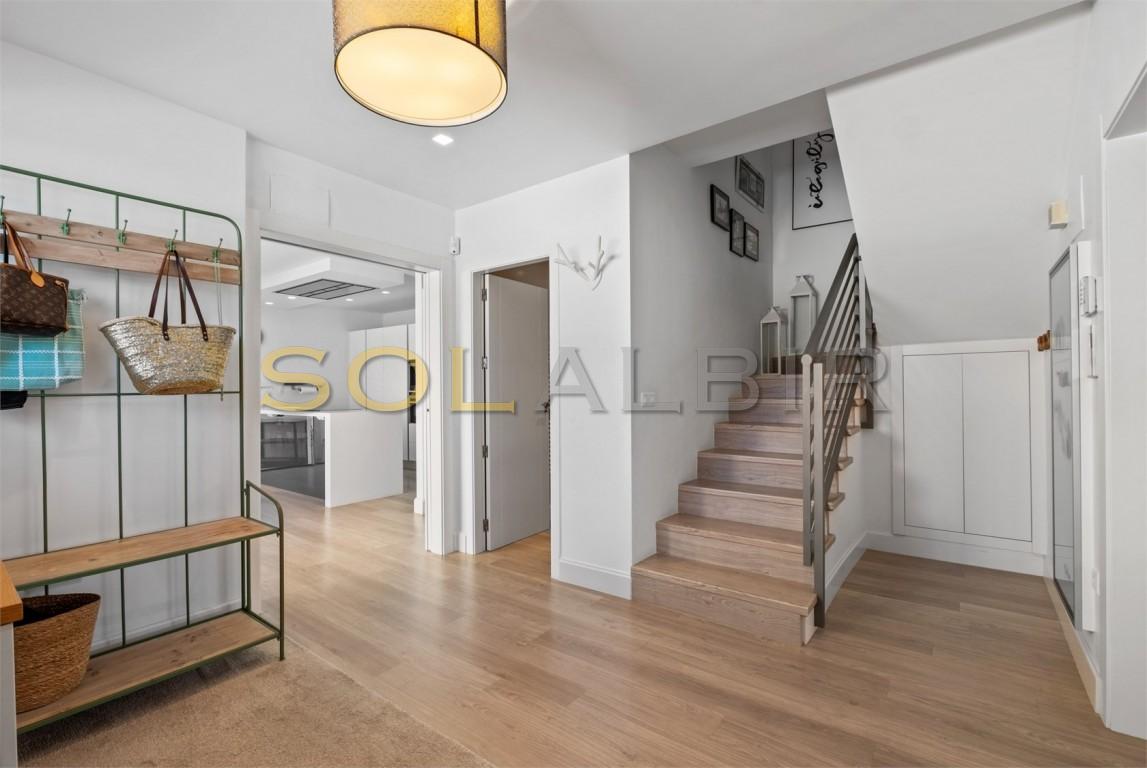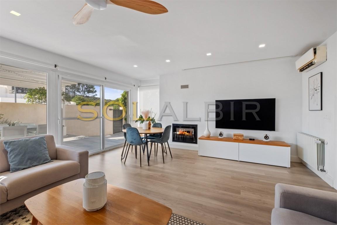Se vende villa adosada de 2 plantas en Alfas del Pi. Fue construida en el año 2006 y reformada en el año 2012. Cuenta con 3 dormitorios, 2 baños completos(uno de ellos en suite). Tiene 172 m2 y otros 140 m2 de terreno. En la planta baja hay un amplio recibidor y un gran salón con acceso directo a una terraza techada con una pérgola bioclimática. La cocina es amplia y totalmente equipada con electrodomésticos de gama alta, cuenta con una zona de office y salida al exterior, donde se encuentra una cocina de verano. En la primera planta están los 3 dormitorios y los 2 baños completos. La villa cuenta con ventanas de doble acristalamiento, aire acondicionado por Split y calefacción central por radiadores. Tiene piscina de agua salada, solárium, trastero con aseo y una caseta que se usa como gimnasio. A su lado, otro trastero incluye un aseo. Además cuenta con un aparcamiento techado para varios vehículos. Es una villa que tiene todas las comodidades, soleada y ubicada en una zona segura y cerca del colegio noruego. Para más información llamen a nuestra oficina.