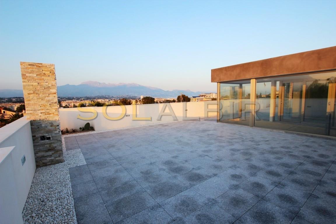 La villa se encuentra sobre una parcela de 1150m² de parcela y 967m² construidos. Tiene 4 plantas incluyendo la azotea con vistas de 360º y el sótano/garaje de 390m2 con ventanas.