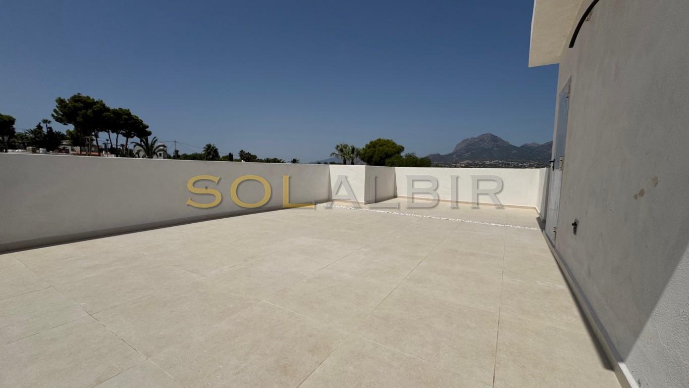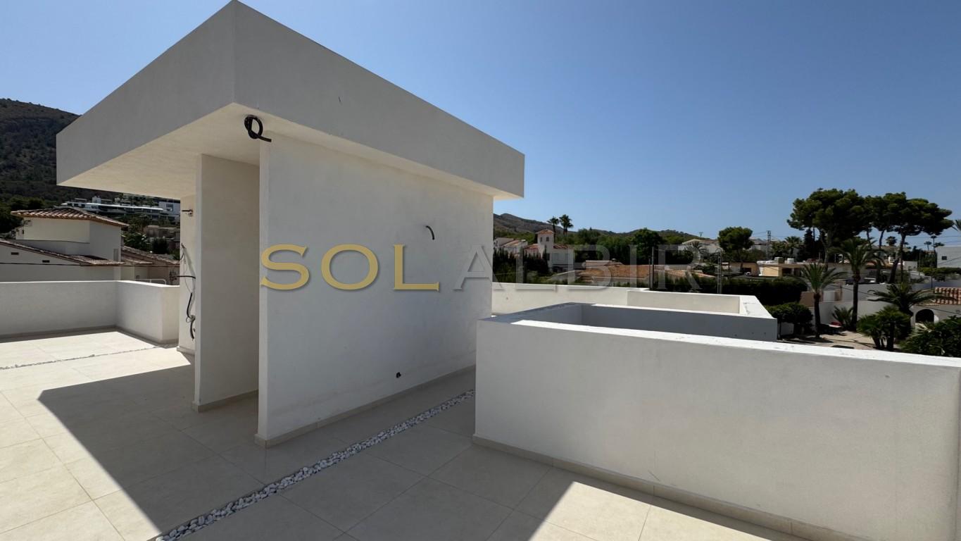 Descubra la vida de lujo en esta impresionante villa adosada de nueva construcción (solo junto al garaje), en el tranquilo vecindario de Albir, cuya finalización está prevista para finales de 2025.