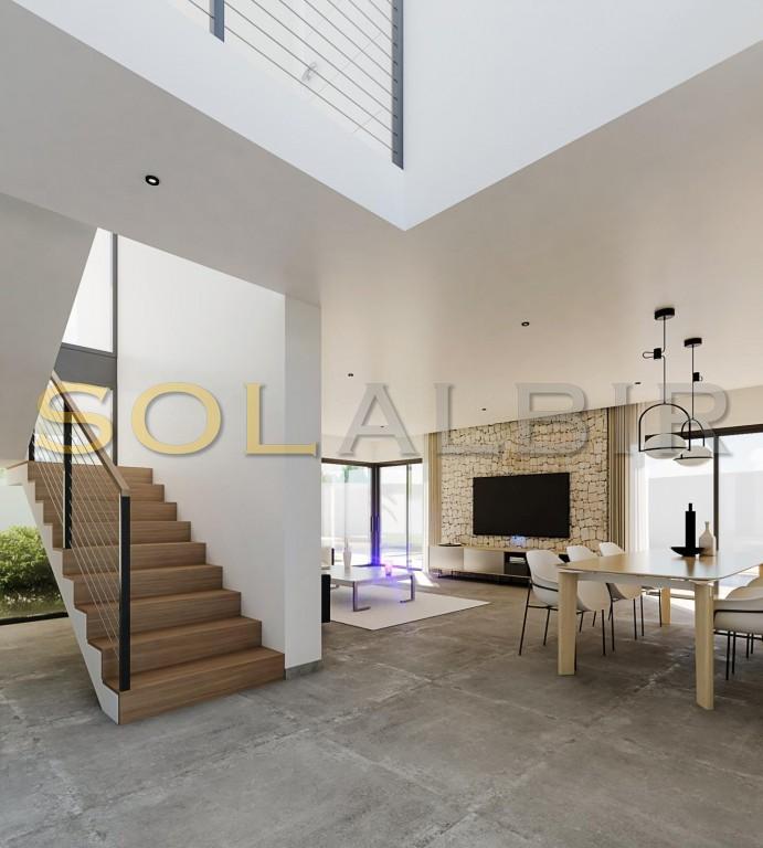 La planta baja tiene una sala de estar y comedor de planta abierta, conectado a una cocina moderna. Este espacio es perfecto para el entretenimiento y la vida diaria, y conduce a una piscina privada con escaleras integradas y una gran terraza y zona de jardín, ideal para disfrutar de los soleados días españoles.