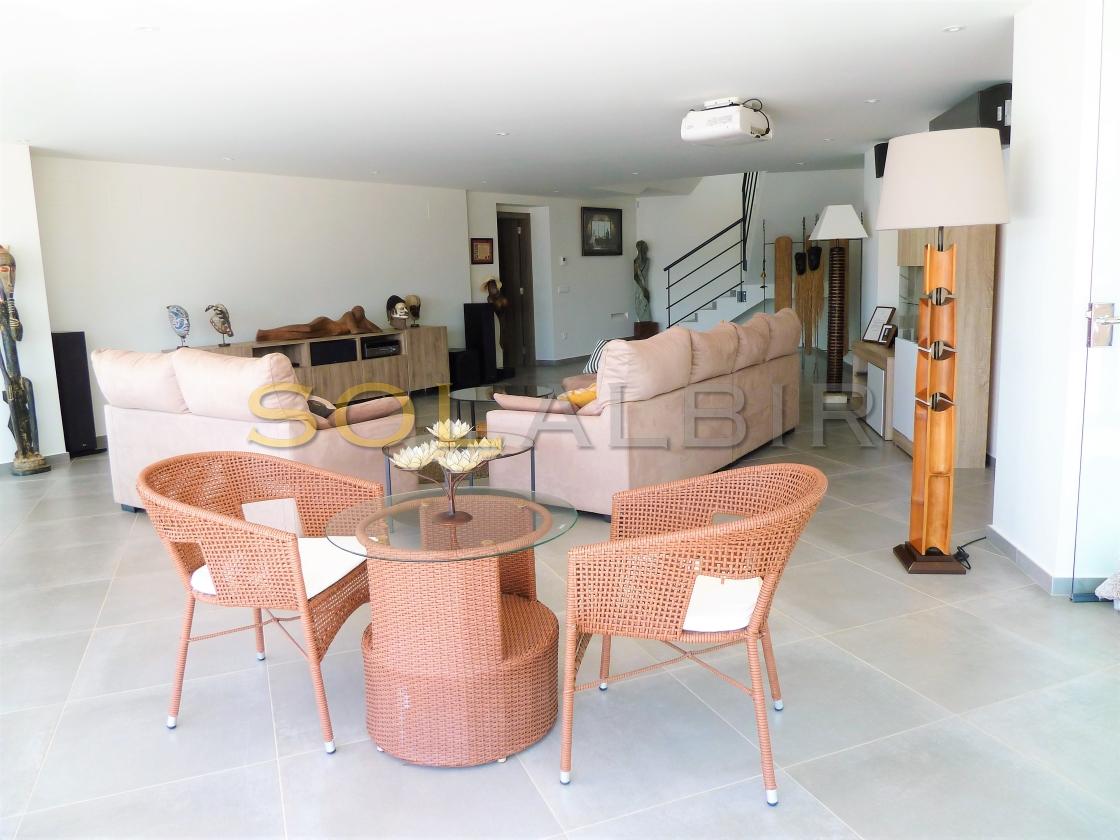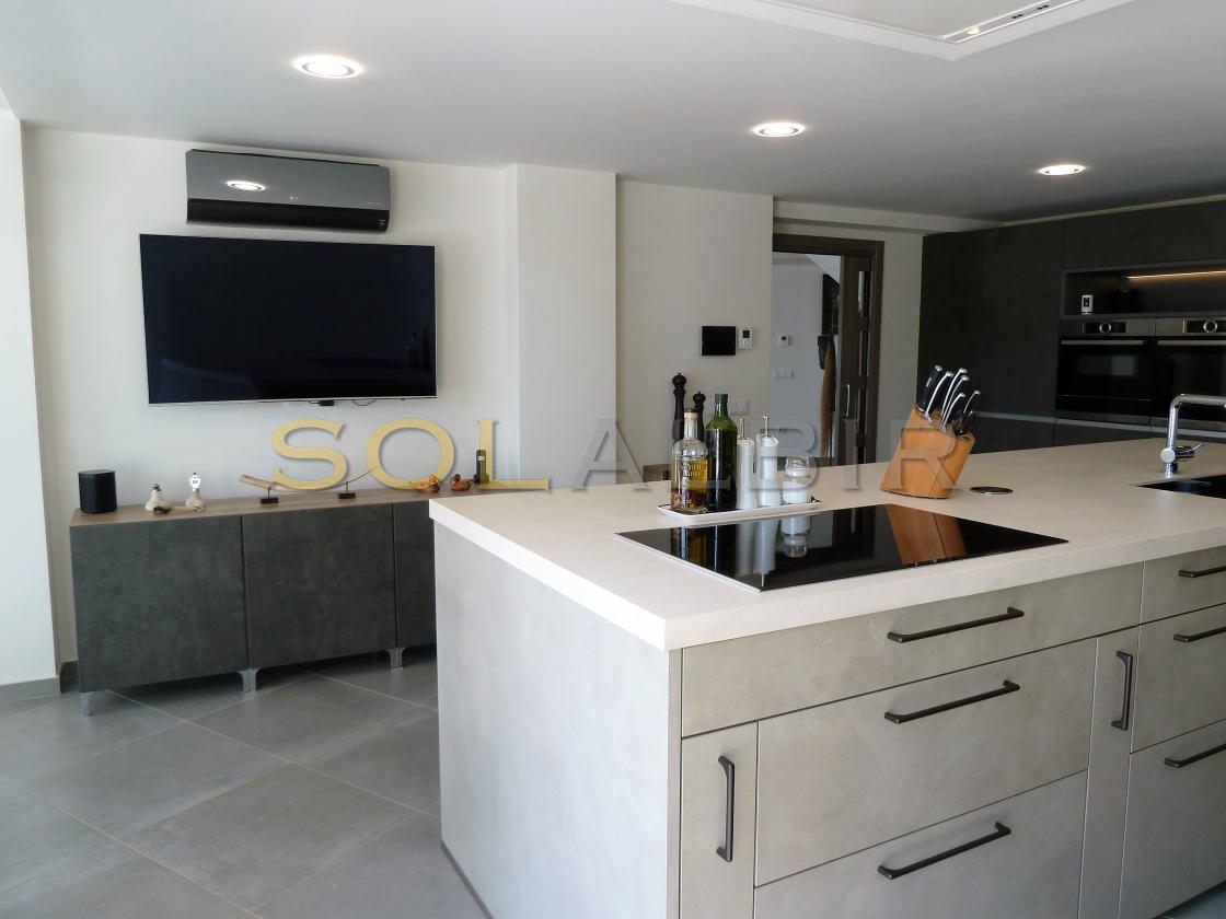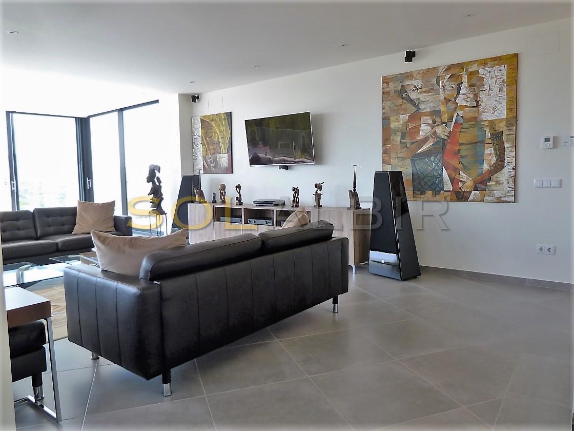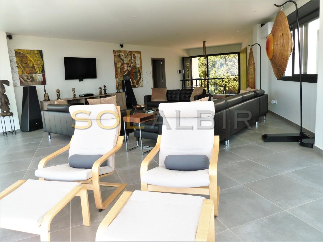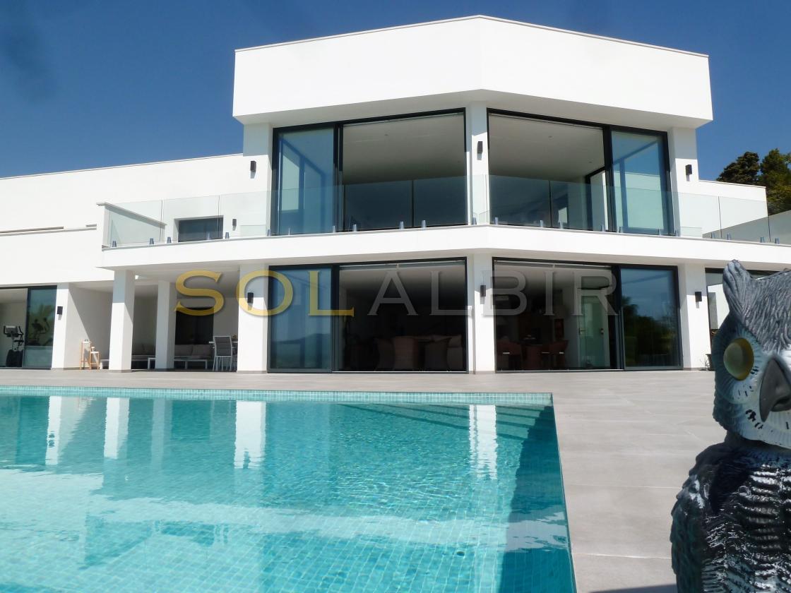 Amplia y moderna villa en venta en el Planet Altea . Esta hermosa y minimalista villa con amplias estancias y terrazas que dan sensación de amplitud y espacio , distribuidas en 3 terrazas todas con perfecta orientación , piscina privada de 16m X 6m soleada todo el día , 2 salones grandes , 5 habitaciones con 5 baños en suite más 1 aseo de cortesía , cocina equipada con equipos de la marca BOSCH todo muy actual y moderno . Como extras tiene : Suelo radiante, A/C frio y calor, bomba de calor industrial, un gimnasio totalmente equipado, sistema de placas solares conectados para todo el uso en la casa. Toda esta espléndida villa está en una parcela de 7500m2 de ellos hay 500m2 construidos con unas vistas al mar y panoramicas muy especiales que componen la casa y sus estancias . Ademas de tener pista de tenis privada garage disponibles para 2 coches, entre otras cosas. Si desea más información contáctenos El experimentado equipo de Skyline le guiará durante todo el proceso de búsqueda y compra y le ofrecerá un buen servicio post-venta. Hablamos tu idioma. Cuando estés en España nos gustaría darte la bienvenida a nuestra oficina para una consulta