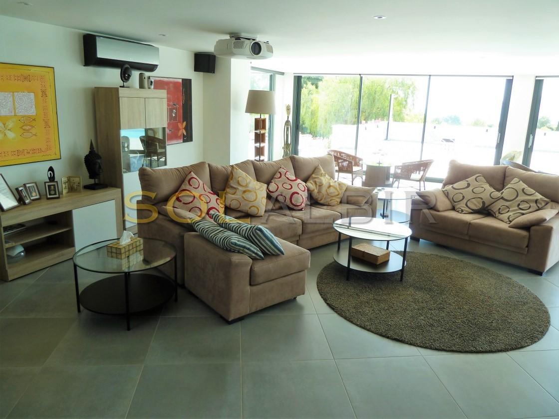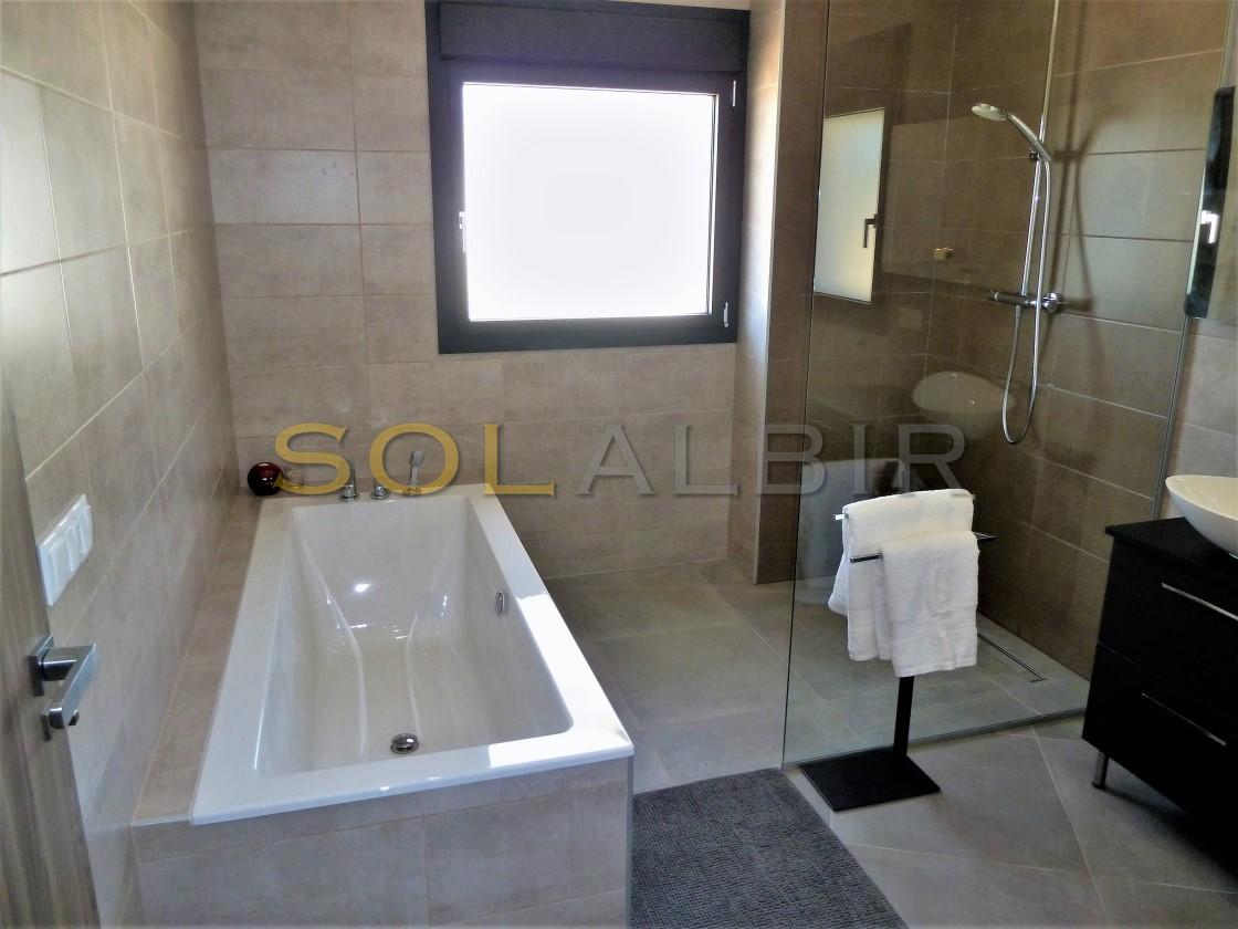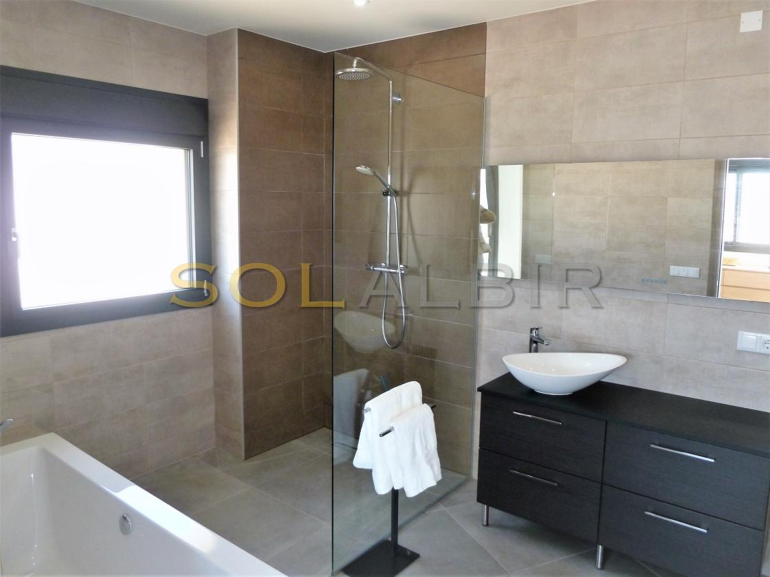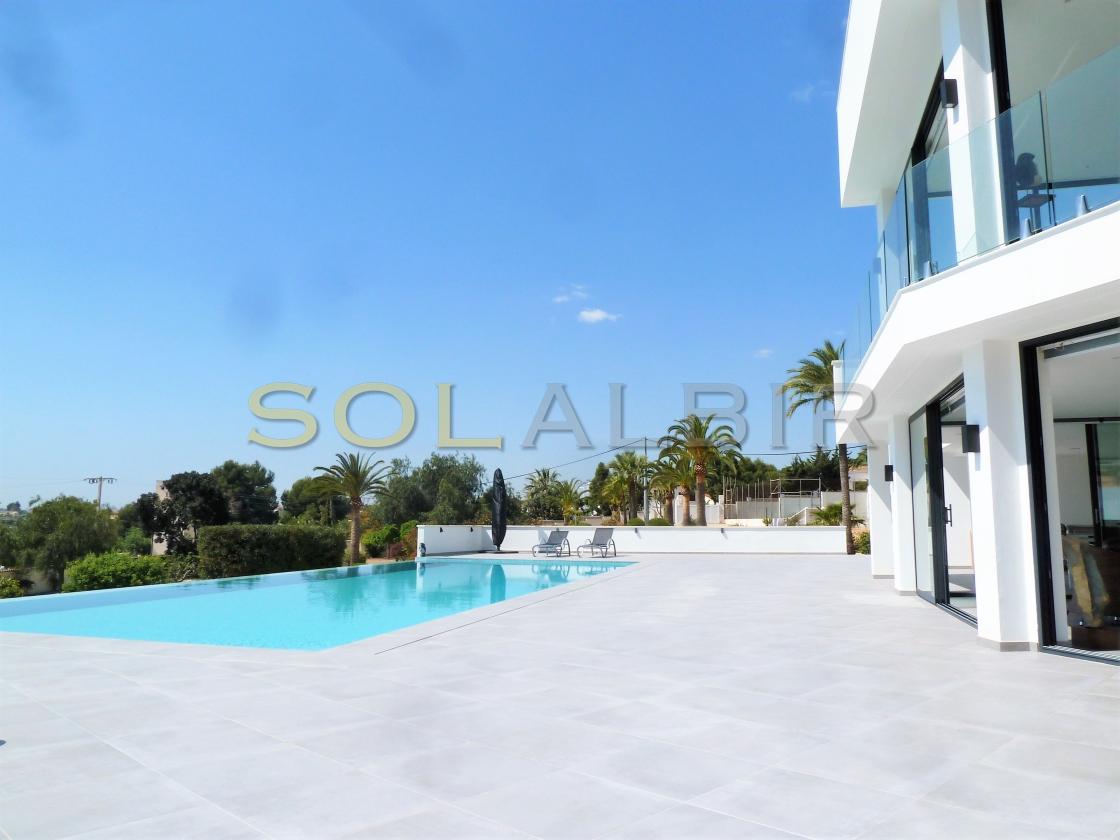Amplia y moderna villa en venta en el Planet Altea . Esta hermosa y minimalista villa con amplias estancias y terrazas que dan sensación de amplitud y espacio , distribuidas en 3 terrazas todas con perfecta orientación , piscina privada de 16m X 6m soleada todo el día , 2 salones grandes , 5 habitaciones con 5 baños en suite más 1 aseo de cortesía , cocina equipada con equipos de la marca BOSCH todo muy actual y moderno . Como extras tiene : Suelo radiante, A/C frio y calor, bomba de calor industrial, un gimnasio totalmente equipado, sistema de placas solares conectados para todo el uso en la casa. Toda esta espléndida villa está en una parcela de 7500m2 de ellos hay 500m2 construidos con unas vistas al mar y panoramicas muy especiales que componen la casa y sus estancias . Ademas de tener pista de tenis privada garage disponibles para 2 coches, entre otras cosas. Si desea más información contáctenos El experimentado equipo de Skyline le guiará durante todo el proceso de búsqueda y compra y le ofrecerá un buen servicio post-venta. Hablamos tu idioma. Cuando estés en España nos gustaría darte la bienvenida a nuestra oficina para una consulta