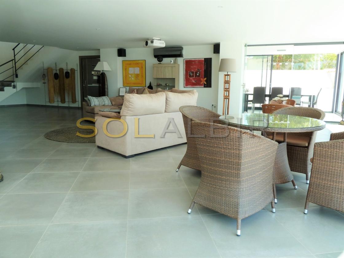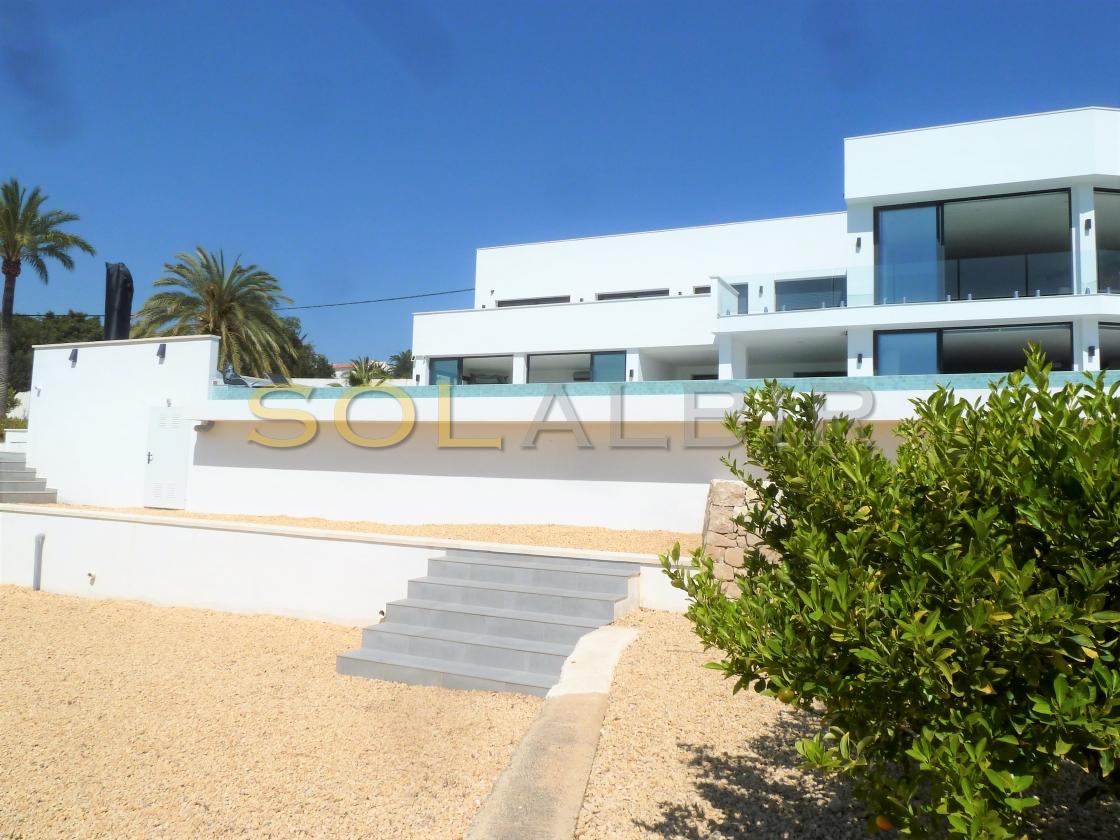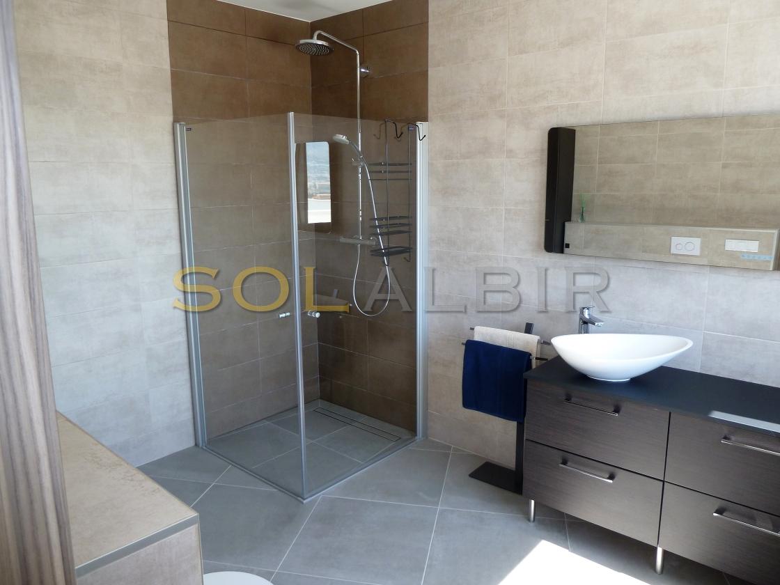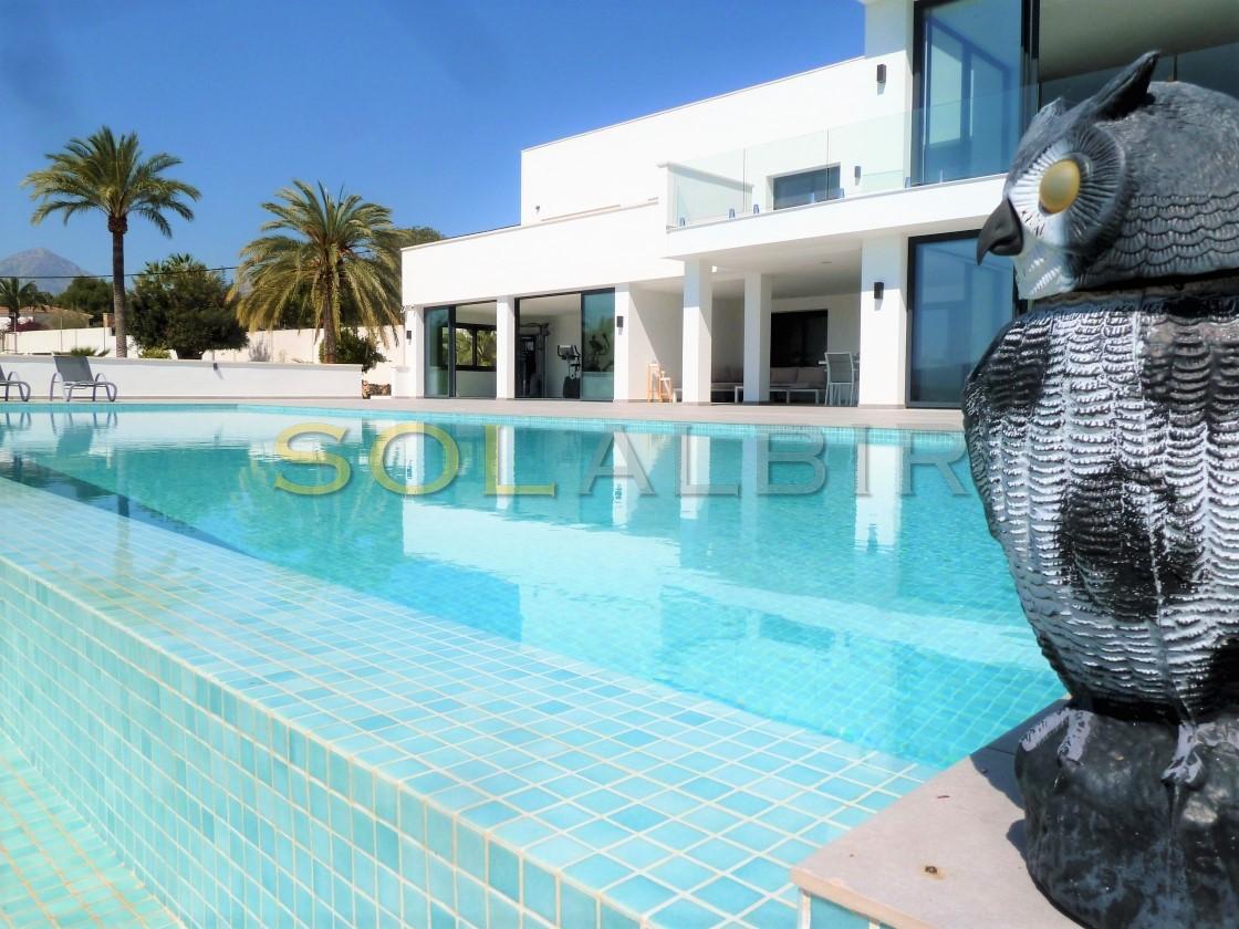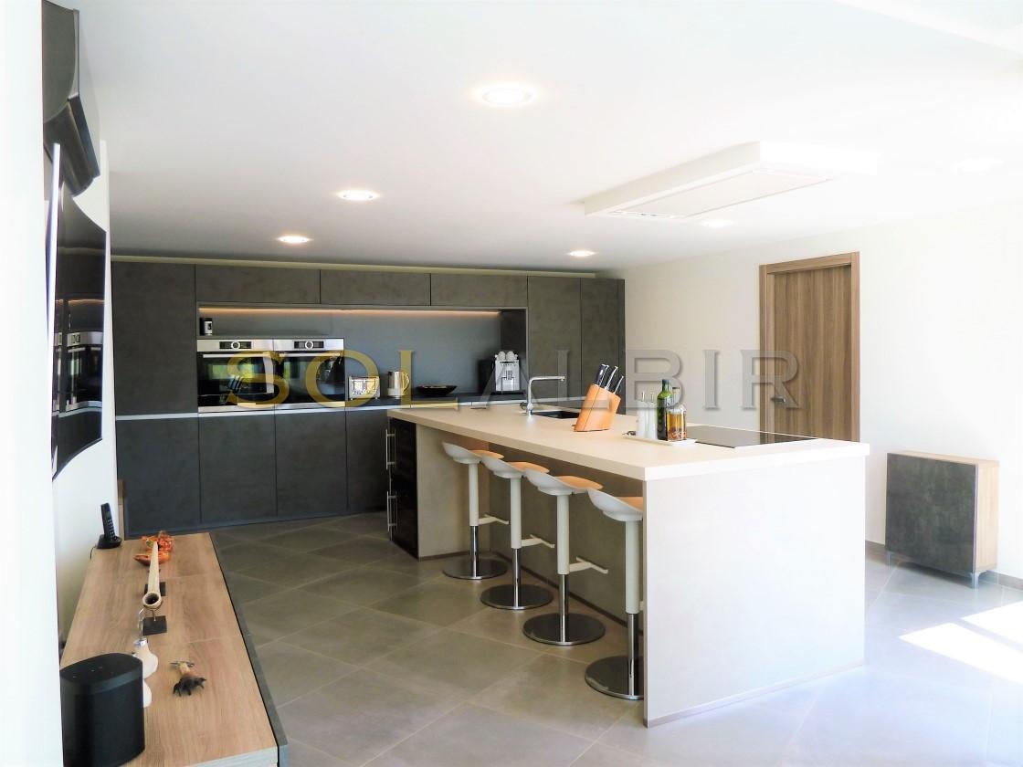 Amplia y moderna villa en venta en el Planet Altea . Esta hermosa y minimalista villa con amplias estancias y terrazas que dan sensación de amplitud y espacio , distribuidas en 3 terrazas todas con perfecta orientación , piscina privada de 16m X 6m soleada todo el día , 2 salones grandes , 5 habitaciones con 5 baños en suite más 1 aseo de cortesía , cocina equipada con equipos de la marca BOSCH todo muy actual y moderno . Como extras tiene : Suelo radiante, A/C frio y calor, bomba de calor industrial, un gimnasio totalmente equipado, sistema de placas solares conectados para todo el uso en la casa. Toda esta espléndida villa está en una parcela de 7500m2 de ellos hay 500m2 construidos con unas vistas al mar y panoramicas muy especiales que componen la casa y sus estancias . Ademas de tener pista de tenis privada garage disponibles para 2 coches, entre otras cosas. Si desea más información contáctenos El experimentado equipo de Skyline le guiará durante todo el proceso de búsqueda y compra y le ofrecerá un buen servicio post-venta. Hablamos tu idioma. Cuando estés en España nos gustaría darte la bienvenida a nuestra oficina para una consulta