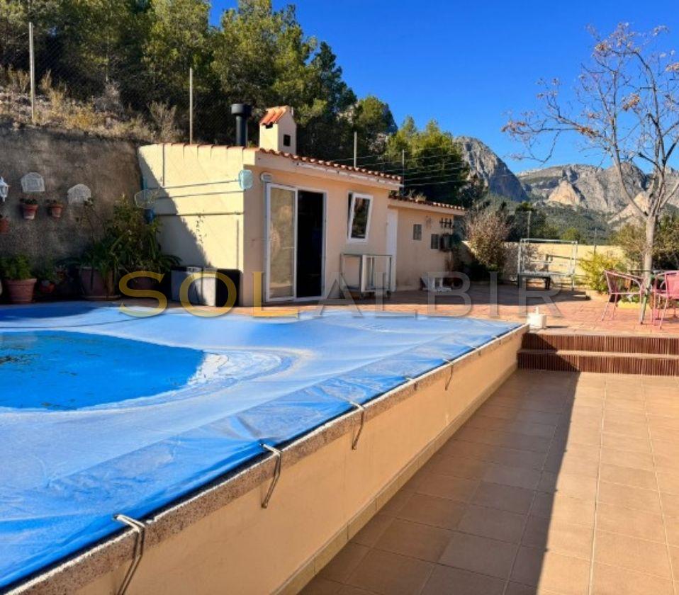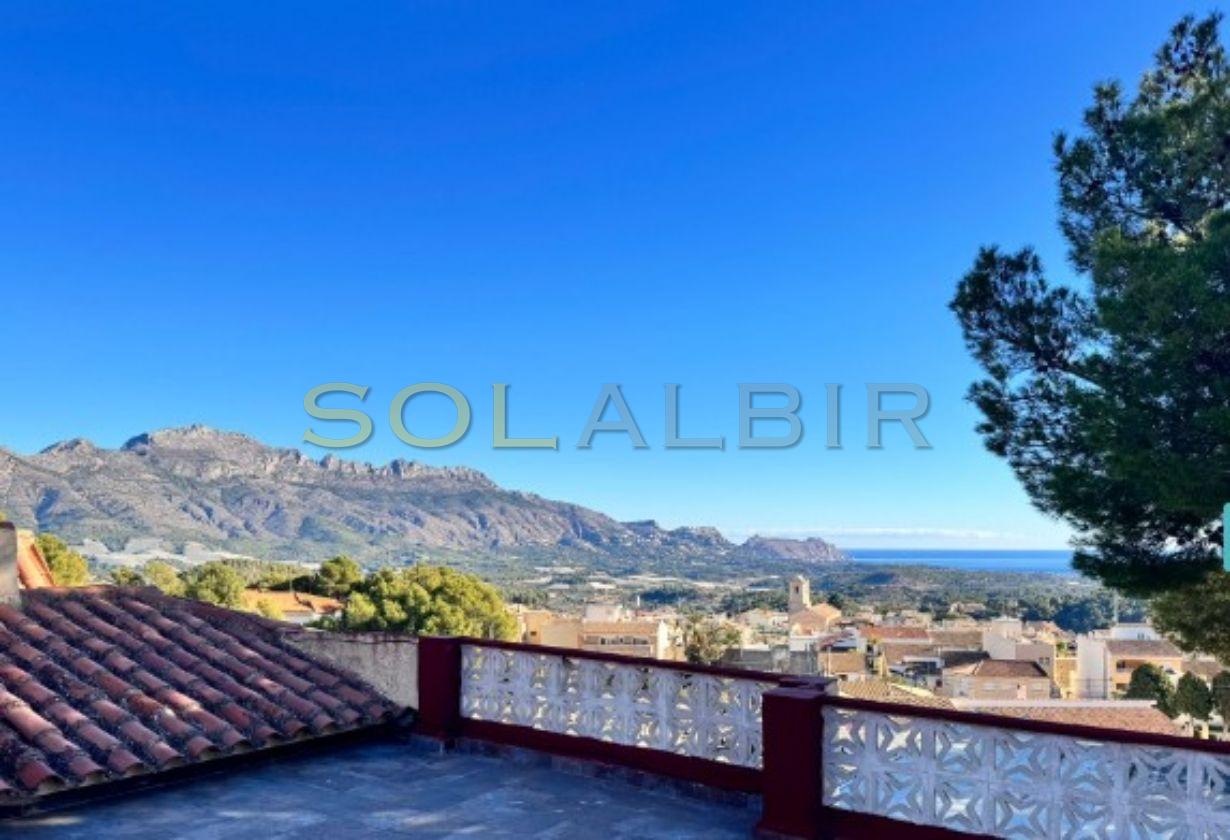 Les presentamos esta bonita casa con vistas al mar y a la montaña que está situada en pleno corazón de La Nucia. La casa cuenta con una parcela de 1200m2 en diferentes niveles y superficie total de 250 m2 con la piscina privada. La casa está equipada con calefacción central de gasoil y radiadores en cada estancia, además la cocina dispone de chimenea de leña. Esta preciosa villa de estilo mediterráneo tiene 5 dormitorios, 3 baños y un apartamento de 2 dormitorios y 1 baño completo. El apartamento cuenta con entrada independiente, con 2 dormitorios y 1 baño, cocina americana con salón-comedor y galería este situado en la planta baja de la casa con su propia entrada. La villa dispone de piscina, barbacoa, trastero, cocina de verano , jardín con una magnífica decoración, aparcamiento para el coche, varias terrazas y zonas chill out. Una opción ideal para vivir con toda la familia en un lugar tranquilo e idílico cerca de todos los servicios.