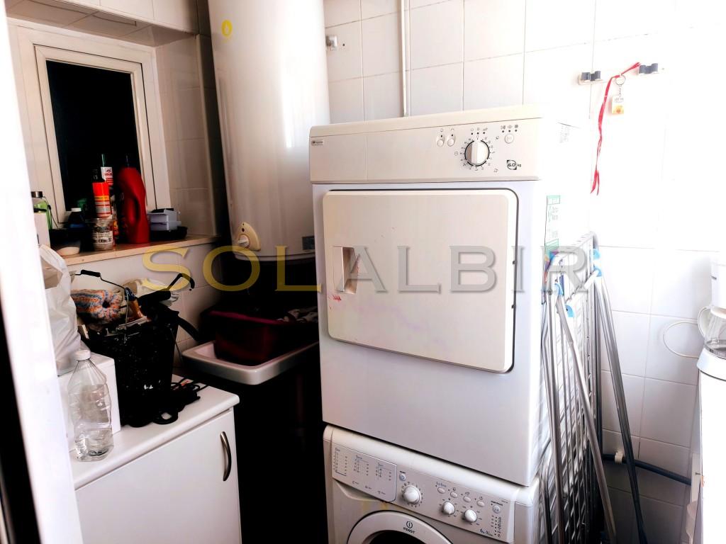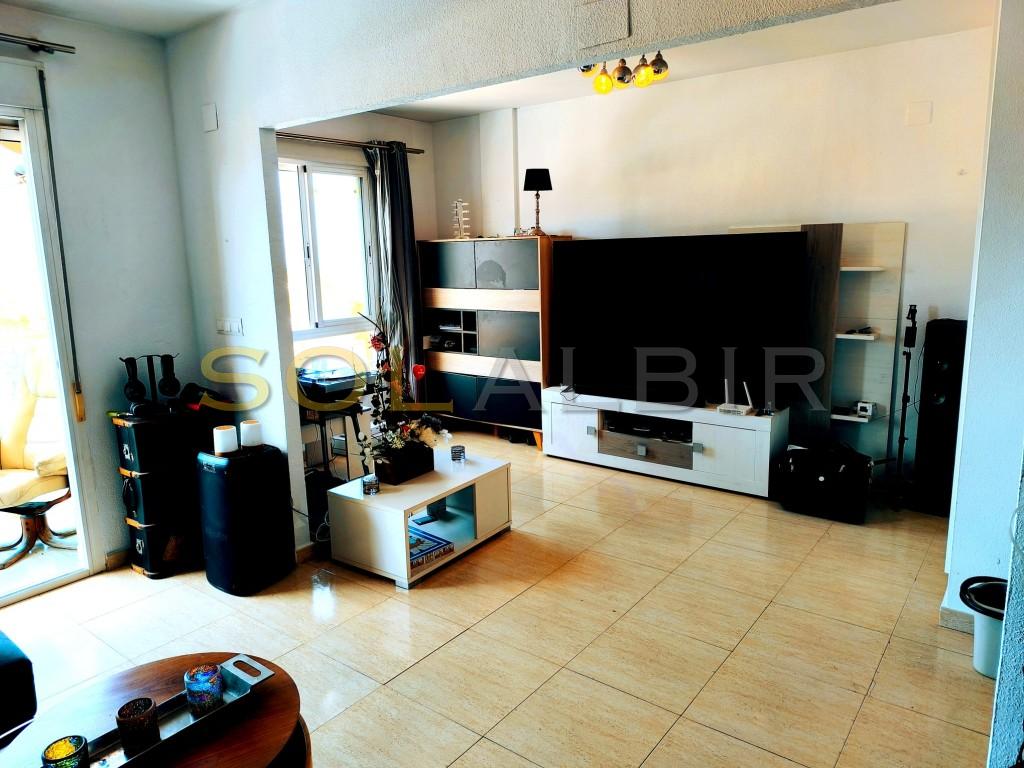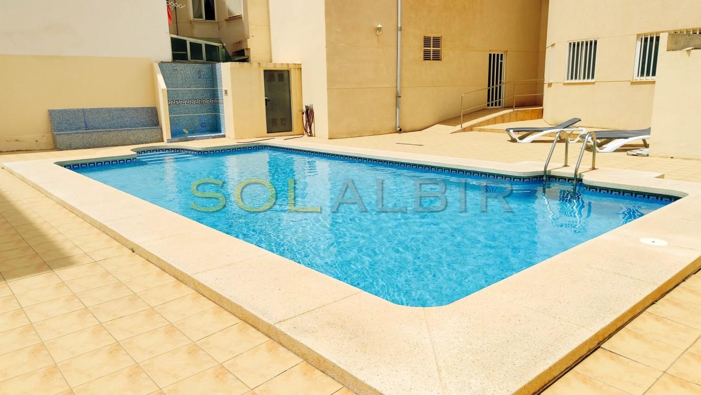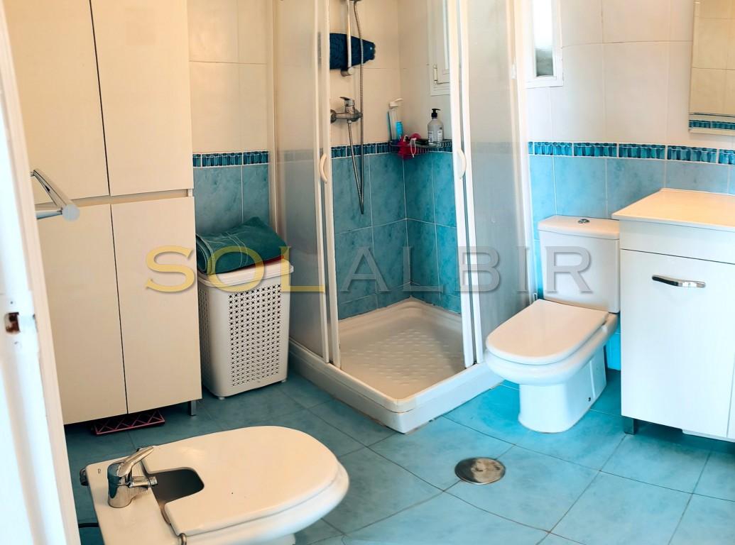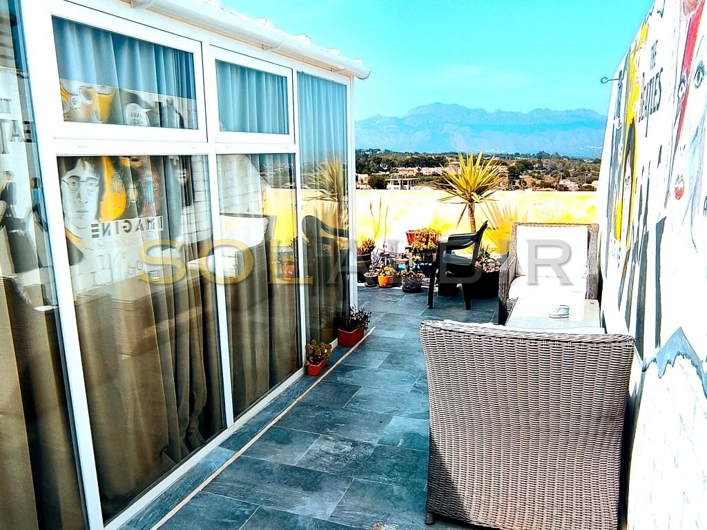 UBICACIÓN ÚNICA - APARTAMENTO DÚPLEX EN PLANTA ALTA CON VISTAS PANORÁMICAS DESDE AMBAS PLANTAS Y PISCINA COMUNITARIA. Este apartamento originalmente contaba con 3 dormitorios, uno de ellos integrado en el salón, pero se puede rehabilitar. En la planta superior, en la azotea, hay una zona cubierta que puede utilizarse como dormitorio de invitados, donde también hay una cocina, lo que supone un total de 2 a 4 dormitorios. En la planta de entrada, hay una superficie construida de 93 m² (83 m² netos) y una escalera que conduce a la espaciosa azotea de uso privado de 87 m². En la planta de entrada, se encuentra el salón con acceso a un balcón y dos baños, uno con ducha y otro con bañera. Hay una cocina independiente y junto a ella un lavadero. Desde la azotea se disfrutan de impresionantes vistas panorámicas y hay una amplia zona de relax con jacuzzi y ducha, actualmente decorada con obras de arte en las paredes. También hay una zona cubierta con cocina, zona de sofás y un trastero. El precio incluye una plaza de garaje. El apartamento se encuentra en un edificio bien cuidado con una bonita piscina comunitaria, uno de los pocos edificios de apartamentos en Alfaz del Pi con piscina. Se encuentra a poca distancia a pie del casco antiguo, restaurantes, tiendas y transporte público, y cerca del estadio deportivo y del edificio cultural con biblioteca y numerosas actividades. ¡IMPRESCINDIBLE! Contáctenos para programar una visita.