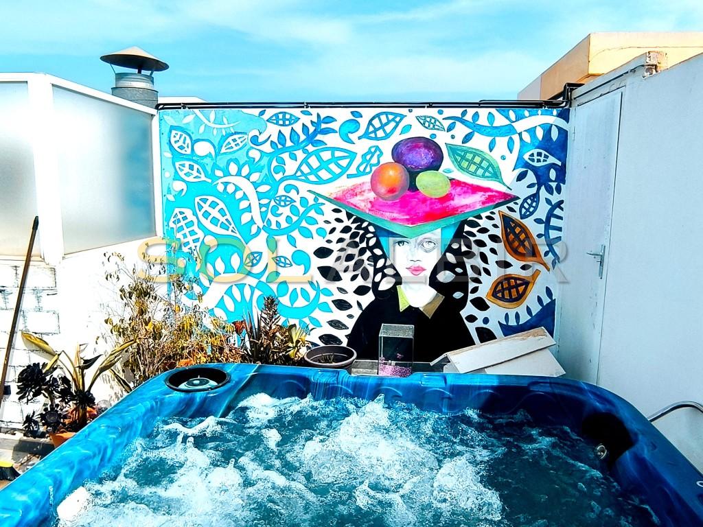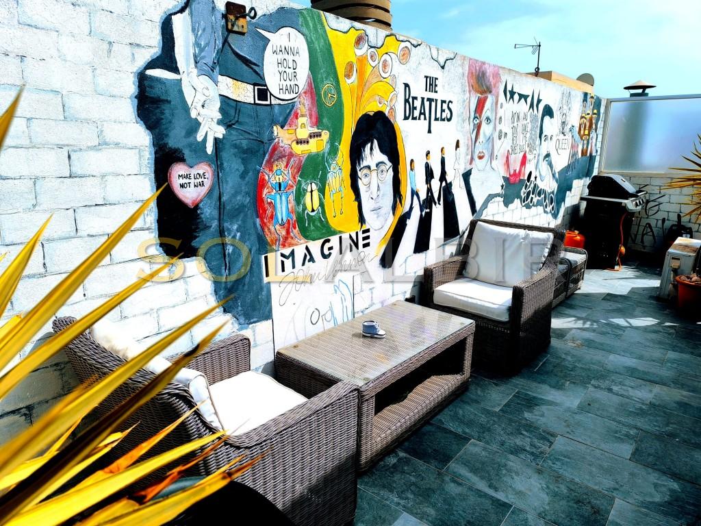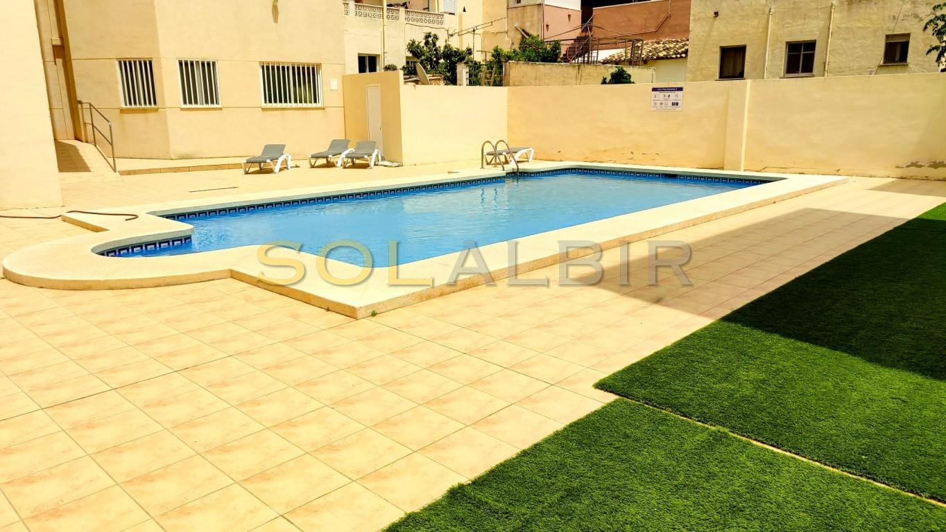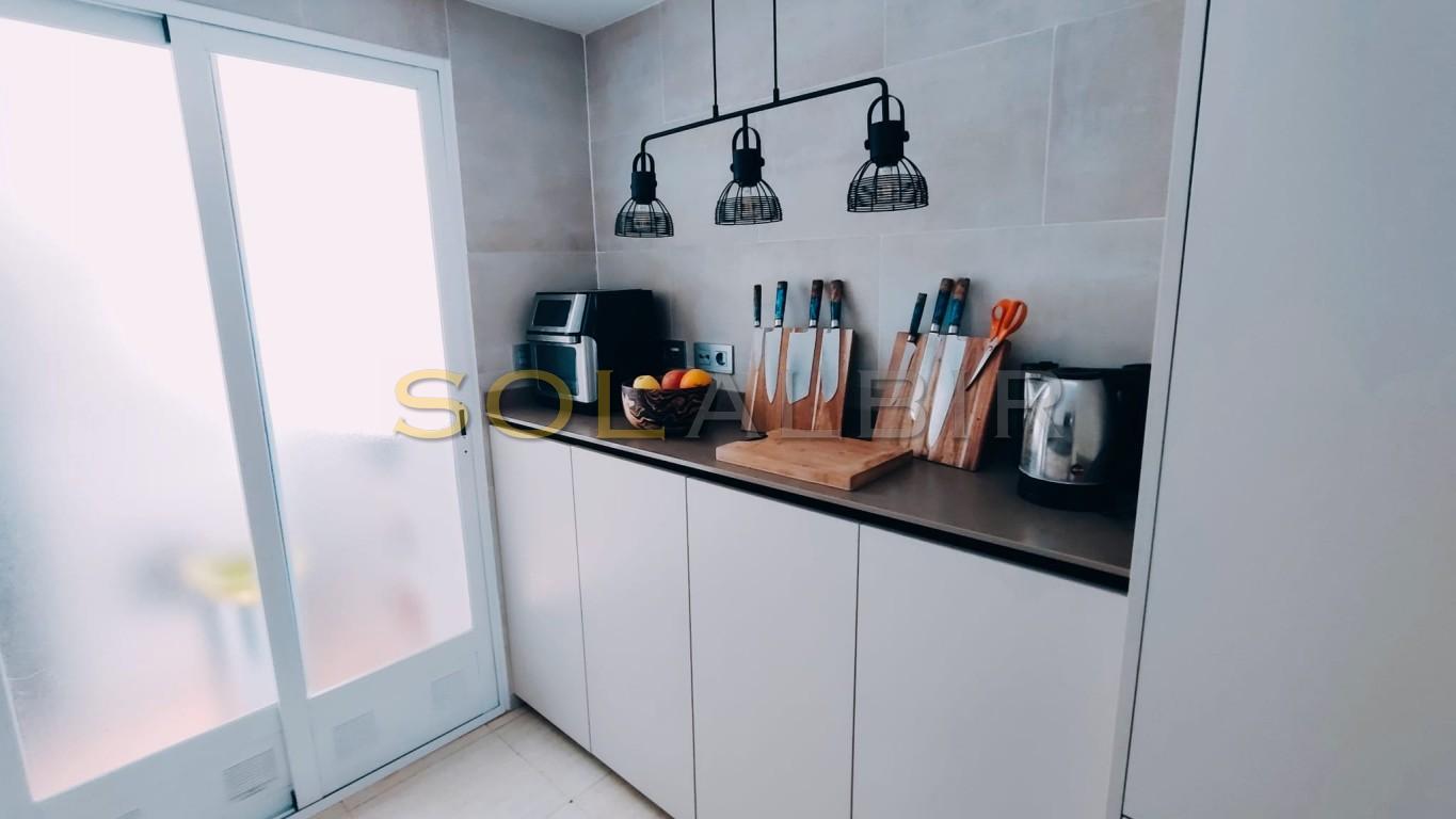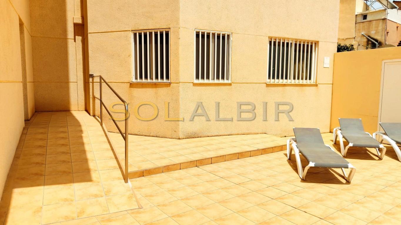 UBICACIÓN ÚNICA - APARTAMENTO DÚPLEX EN PLANTA ALTA CON VISTAS PANORÁMICAS DESDE AMBAS PLANTAS Y PISCINA COMUNITARIA. Este apartamento originalmente contaba con 3 dormitorios, uno de ellos integrado en el salón, pero se puede rehabilitar. En la planta superior, en la azotea, hay una zona cubierta que puede utilizarse como dormitorio de invitados, donde también hay una cocina, lo que supone un total de 2 a 4 dormitorios. En la planta de entrada, hay una superficie construida de 93 m² (83 m² netos) y una escalera que conduce a la espaciosa azotea de uso privado de 87 m². En la planta de entrada, se encuentra el salón con acceso a un balcón y dos baños, uno con ducha y otro con bañera. Hay una cocina independiente y junto a ella un lavadero. Desde la azotea se disfrutan de impresionantes vistas panorámicas y hay una amplia zona de relax con jacuzzi y ducha, actualmente decorada con obras de arte en las paredes. También hay una zona cubierta con cocina, zona de sofás y un trastero. El precio incluye una plaza de garaje. El apartamento se encuentra en un edificio bien cuidado con una bonita piscina comunitaria, uno de los pocos edificios de apartamentos en Alfaz del Pi con piscina. Se encuentra a poca distancia a pie del casco antiguo, restaurantes, tiendas y transporte público, y cerca del estadio deportivo y del edificio cultural con biblioteca y numerosas actividades. ¡IMPRESCINDIBLE! Contáctenos para programar una visita.