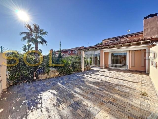 Otras características de la propiedad incluyen suelos de mármol travertino, chimenea, ventanas de doble acristalamiento, rejas de seguridad, persianas eléctricas en los salones, aire acondicionado y calefacción central con radiadores. En el exterior, también hay riego automático y puerta de garaje con apertura eléctrica.