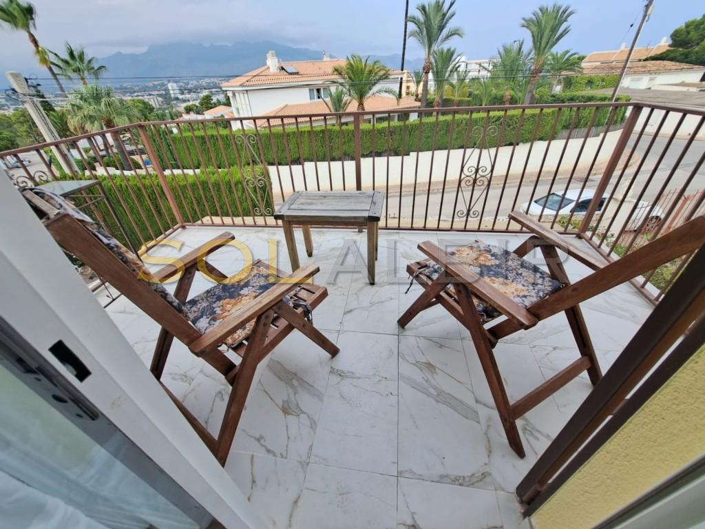 Chalet adosado en el centro de Albir, a poca distancia a pie de la calle principal y la playa. Casa de estilo tradicional mediterráneo de 3 dormitorios con alojamiento independiente para invitados. Varias terrazas con vistas al mar y a la montaña alrededor de la propiedad le permiten disfrutar del sol o la sombra durante todo el día. Aparcamiento privado, aunque no dispone de garaje, ni piscina privada. Ideal para vivir todo el año o para relajarse en su refugio vacacional. ¡Reserve su visita hoy mismo!