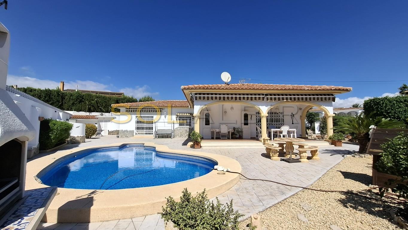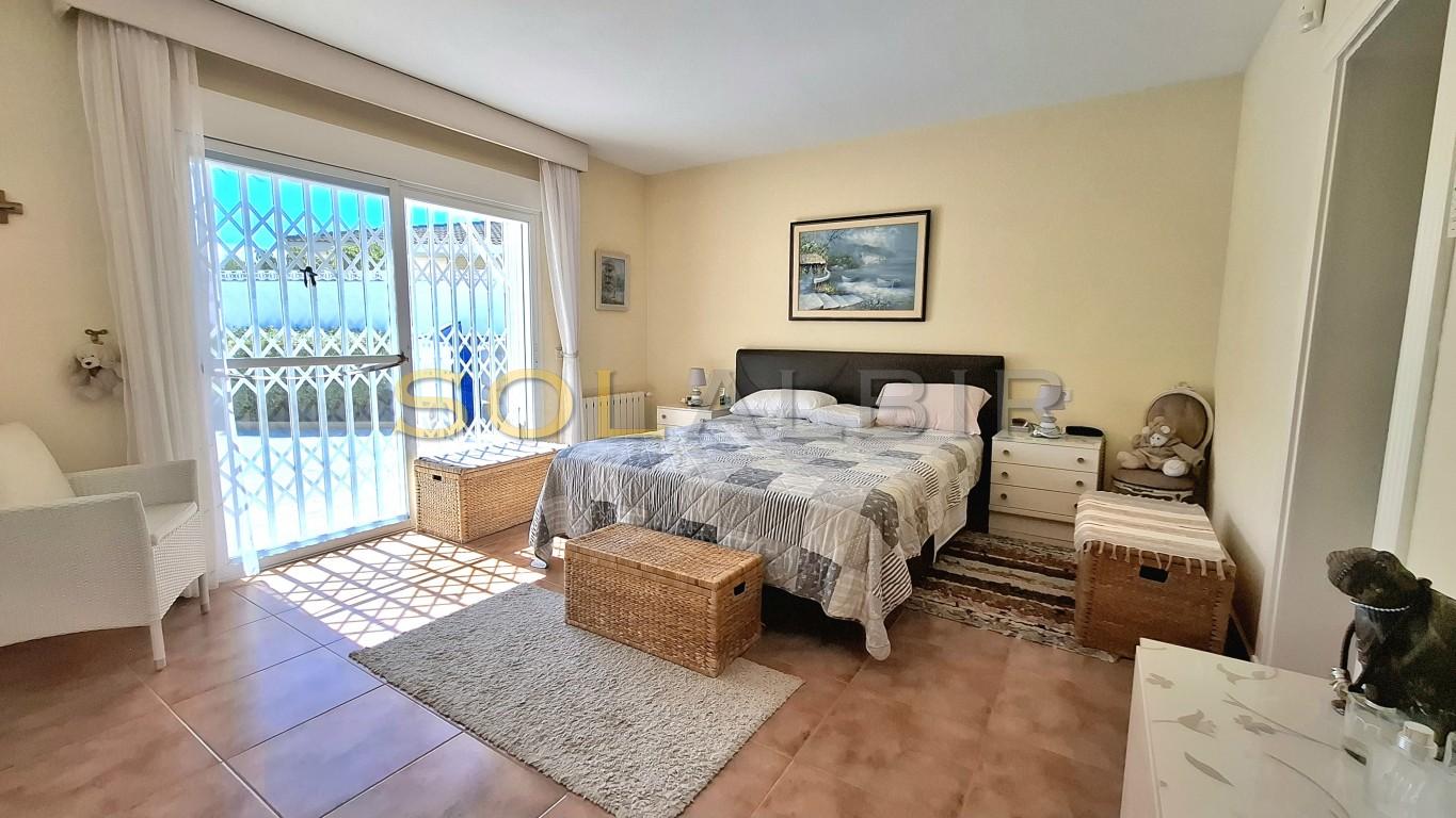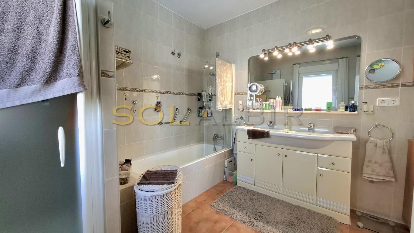 Espaciosa y soleada villa en una tranquila zona residencial, cerca de todas las comodidades. Distribuida en una sola planta, esta villa con orientación sur ofrece todas las comodidades, tanto para vivienda habitual como para vacaciones. Su piscina privada (con ducha exterior) se encuentra en un jardín mediterráneo tradicional de fácil mantenimiento, con amplios rincones soleados y/o sombreados, según la hora del día y la temporada. En el interior disponemos de una cocina independiente con lavadero, un amplio salón-comedor, un dormitorio principal con baño en suite y acceso directo a la piscina. Otros dos dormitorios dobles (ambos con armarios empotrados) comparten un baño adicional. Todas las habitaciones disponen de aire acondicionado y calefacción central (gasoil). Una casa de invitados independiente con baño propio se utiliza actualmente como taller, pero se puede reconvertir fácilmente. Un amplio garaje también sirve como trastero adicional y hay aparcamiento para varios coches. Reserve hoy mismo su visita privada y descubra su propio rincón de paraíso mediterráneo.