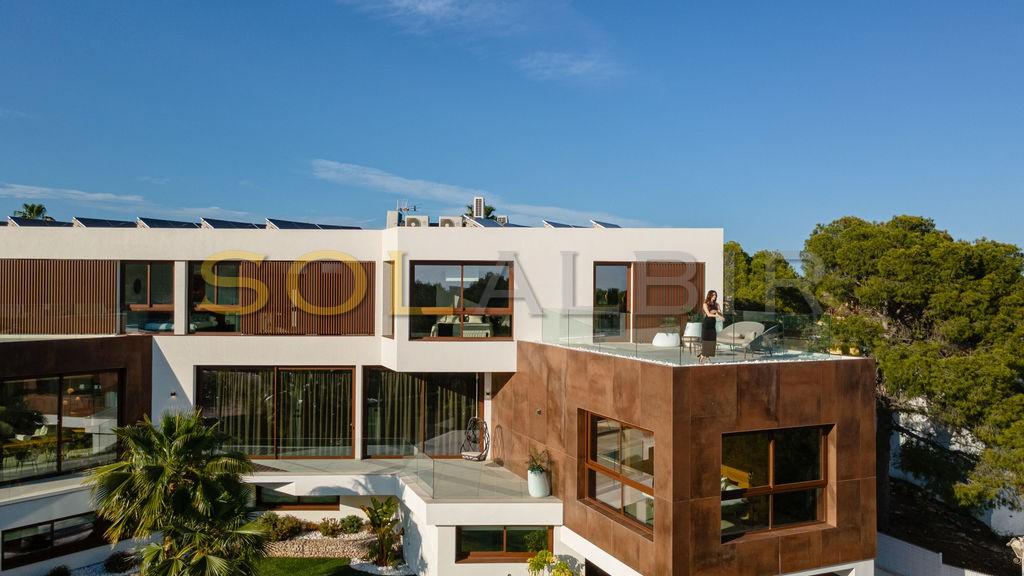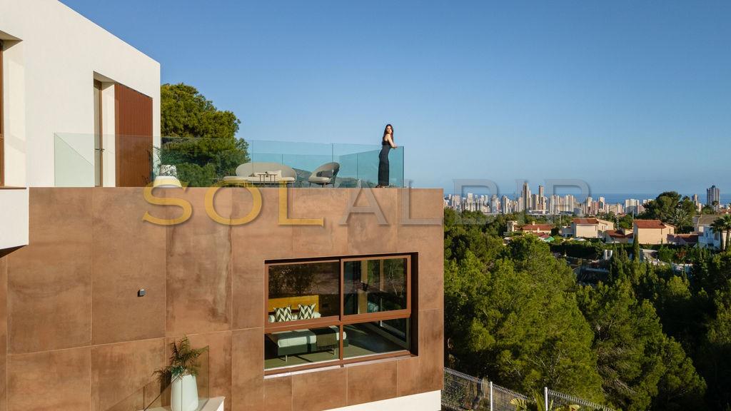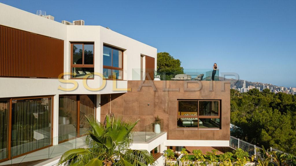 Descubra Villa Zen Infinity, una joya arquitectónica moderna enclavada entre el mar y la montaña en el encantador pueblo de La Nucía, a pocos minutos de la vibrante ciudad costera de Benidorm. Desde el momento en que llegas, te atrae el diseño elegante y limpio con líneas rectas y acabados de alta calidad, mostrando una apariencia impecable. La villa cuenta con un amplio salón con impresionantes vistas panorámicas al mar Mediterráneo. Grandes ventanales de cristal de 3 metros de altura con protección solar inundan las habitaciones de luz natural y brisa marina, creando una atmósfera relajante y acogedora. En el interior encontrará una gran oficina y cuatro suites completas, cada una de las cuales ofrece impresionantes vistas al mar. Dos suites brindan acceso a terrazas privadas. Las habitaciones cuentan con diseños elegantes y contemporáneos con muebles minimalistas y acabados en tonos claros, creando un ambiente tranquilo y sereno. Todas las habitaciones tienen baño privado y vestidor, lo que garantiza una experiencia lujosa y confortable. La planta baja alberga un gran spa, el corazón de la villa, que ofrece total relajación y bienestar. Disfrute de la piscina climatizada estilo jacuzzi con cascada, bancos de hidromasaje y tumbonas de burbujas, además de una amplia sauna finlandesa y baño turco. Esta planta también cuenta con una gran bodega y un ascensor que para en cada nivel. En el exterior, una piscina infinita y una zona de barbacoa lo invitan a disfrutar de una vida y un comedor al aire libre. El espacioso jardín, meticulosamente diseñado, es perfecto para disfrutar de las puestas de sol. El garaje de la villa, con espacio para dos vehículos, incluye cargador de coche eléctrico. El alto aislamiento en fachada, la orientación SUR y los 19 paneles fotovoltaicos en cubierta contribuyen a una Calificación Energética "A", ideal para personas concienciadas con el medio ambiente y con mentalidad de sostenibilidad. La domótica de última generación, la calefacción por suelo radiante y Airzone en cada habitación se suman al confort y la calidad de Villa Zen. Villa Zen Infinity ofrece una combinación única de diseño moderno, elegante y sofisticado, brindando una calidad de vida incomparable en la Costa Blanca. Para experimentar Villa Zen Infinity de primera mano, no dude en contactarnos.