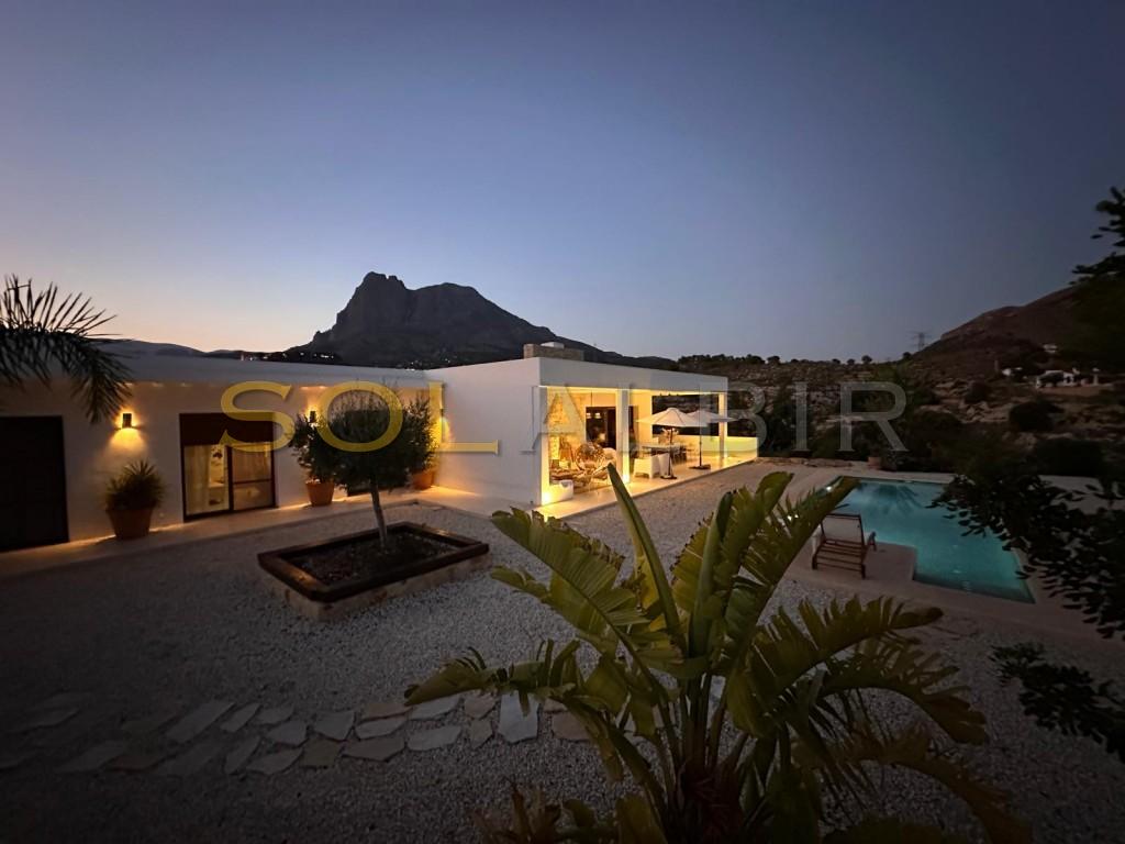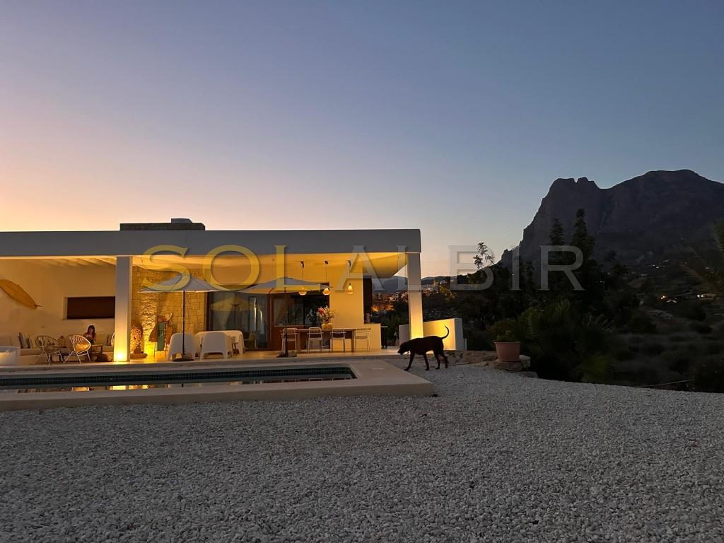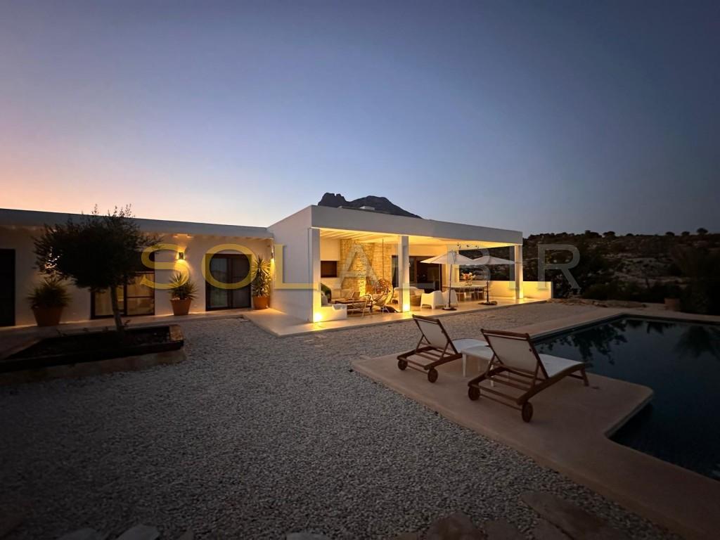 Luxury Rustic Mediterranean Villa with Sea Views in Finestrat. Discover this exceptional luxury rustic villa nestled in the hills of Finestrat, just minutes from the charming village and next to a prestigious golf course. Built in the timeless Mediterranean style, the property offers 350m² of elegant living space, surrounded by 25,000m² of private land with panoramic sea and mountain views. The villa features 4 spacious bedrooms, 3 modern bathrooms, a fully equipped independent laundry room, and high-speed fiber internet – perfect for remote work or living connected in serenity. The large outdoor area includes a private swimming pool, chill-out zone, and ample space for enjoying the peaceful natural surroundings. Goo oportunity also to do a bussiness like a glamping or similar Whether you're seeking a tranquil retreat or a stylish residence near the coast, this home offers both privacy and convenience, with Finestrat’s shops and restaurants just moments away.