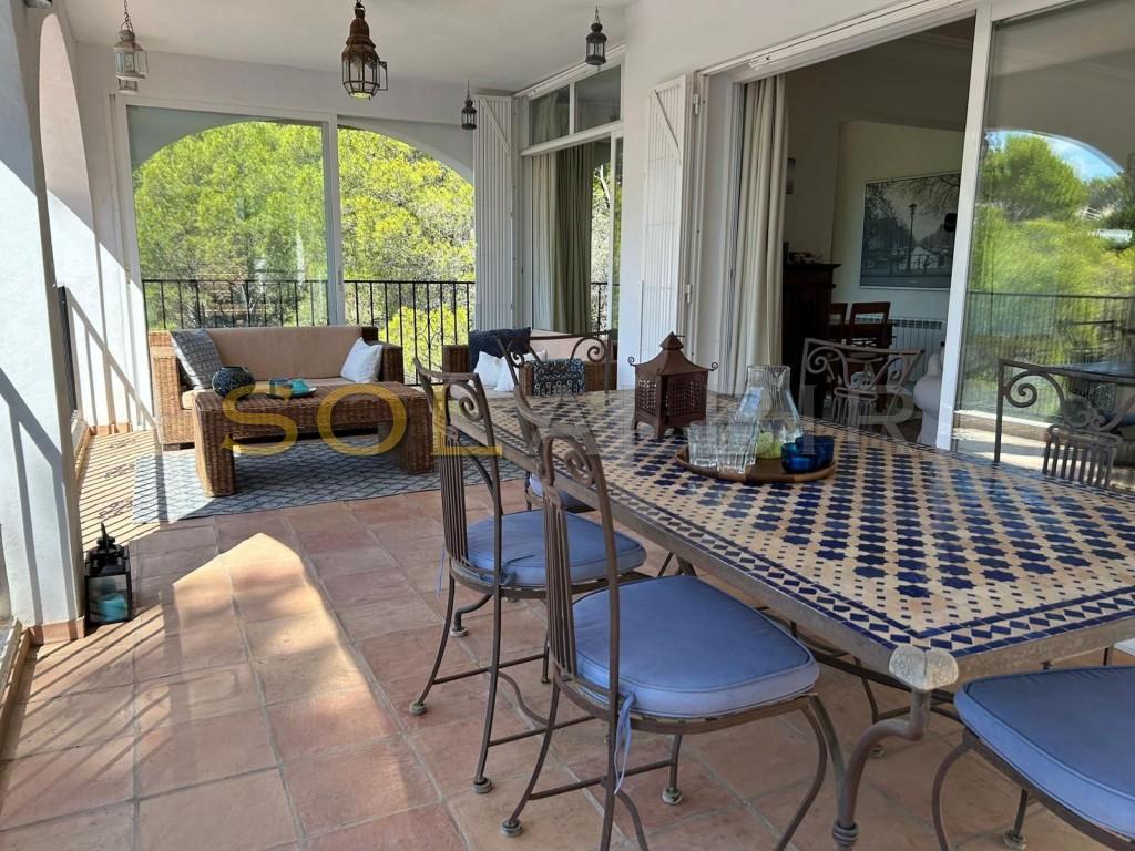 Oportunidad de inversión y retiro familiar en Altea la Vella Al final de un tranquilo callejón sin salida en una de las zonas residenciales más tranquilas de Altea la Vella, esta elegante villa mediterránea ofrece el equilibrio perfecto entre privacidad, entorno natural y comodidad moderna, lo que la convierte en una excelente oportunidad tanto para inversores exigentes como para familias que buscan una casa a largo plazo o un refugio de vacaciones. Rodeada de un maduro paisaje mediterráneo, la propiedad cuenta con vistas panorámicas a las montañas y al bosque desde múltiples terrazas, lo que ofrece una excepcional sensación de tranquilidad y espacio. La residencia principal ha sido renovada con gusto y cuenta con un amplio salón-comedor de planta abierta con chimenea, conectado a la perfección con una elegante terraza semiacristalada, ideal para disfrutar durante todo el año. Una cocina abierta totalmente equipada con electrodomésticos de alta gama aporta funcionalidad y elegancia. Esta planta también alberga tres luminosos dormitorios y dos baños, incluyendo una suite principal con baño privado. En la planta baja, con entrada independiente, un apartamento de invitados de dos dormitorios ofrece potencial de alquiler inmediato o un espacio ideal para vivir con varias generaciones. Incluye una cocina americana, un cómodo salón-comedor, un baño completo y dos terrazas privadas, una de ellas a la sombra de los árboles para relajarse en la naturaleza. Desde aquí, se accede directamente a la piscina privada, lo que garantiza total privacidad y disfrute. Un solárium en la azotea de más de 20 m² corona la propiedad, ofreciendo impresionantes vistas del paisaje circundante: un lugar único para relajarse o entretenerse. La villa está equipada con aire acondicionado en la planta superior, radiadores eléctricos en todas partes y amplio estacionamiento en el lugar para varios vehículos. Por qué es ideal para inversores y familias: Apartamento de invitados independiente: perfecto para generar ingresos por alquiler o alojar a una familia numerosa. Condición llave en mano con acabados de alta calidad. Ubicación tranquila y segura, ideal para vivir todo el año. A solo 15 minutos de la playa y del pintoresco casco antiguo de Altea. Fuerte potencial de alquiler y reventa a largo plazo en una zona muy solicitada. Ya sea que esté buscando una casa familiar con espacio para crecer o una propiedad que pueda generar retornos inmediatos, esta villa ofrece una versatilidad incomparable en un entorno de belleza natural y paz. Una inversión inteligente. ¡Una vida hermosa!