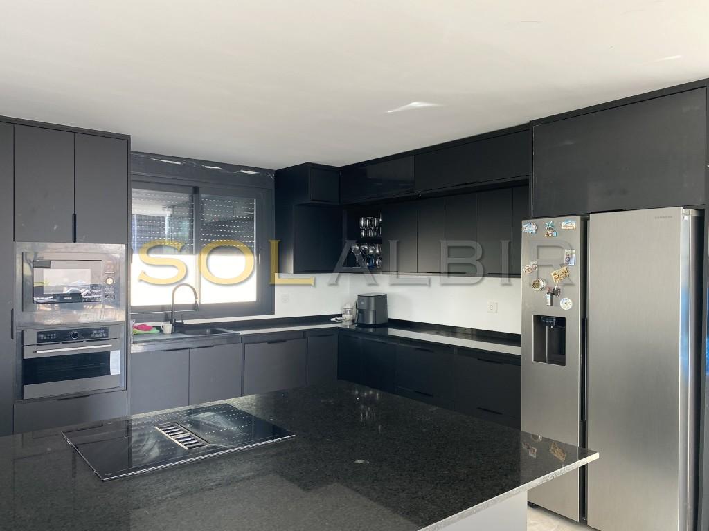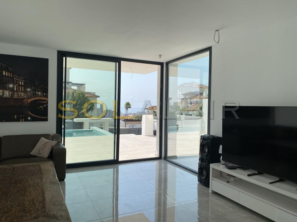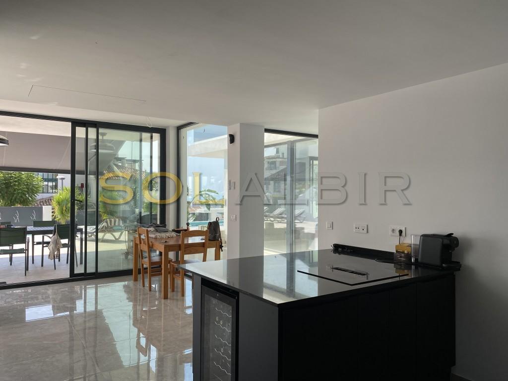En la planta superior se encuentran los tres dormitorios con baños en suite, estancias muy modernas y luminosas con terrazas con vistas al mar y a la montaña. El ascensor sube a la torre, donde hay dos terrazas con vistas panorámicas de 360 grados.