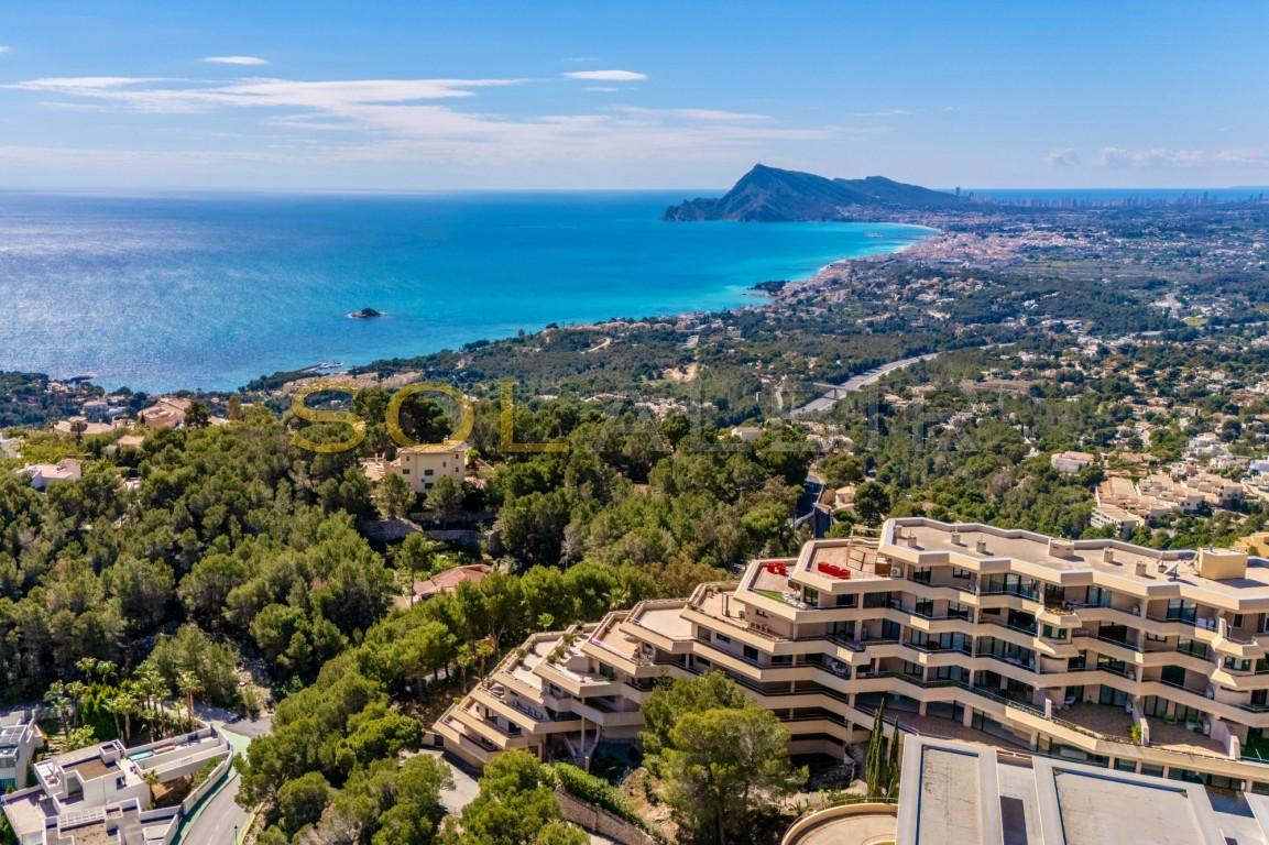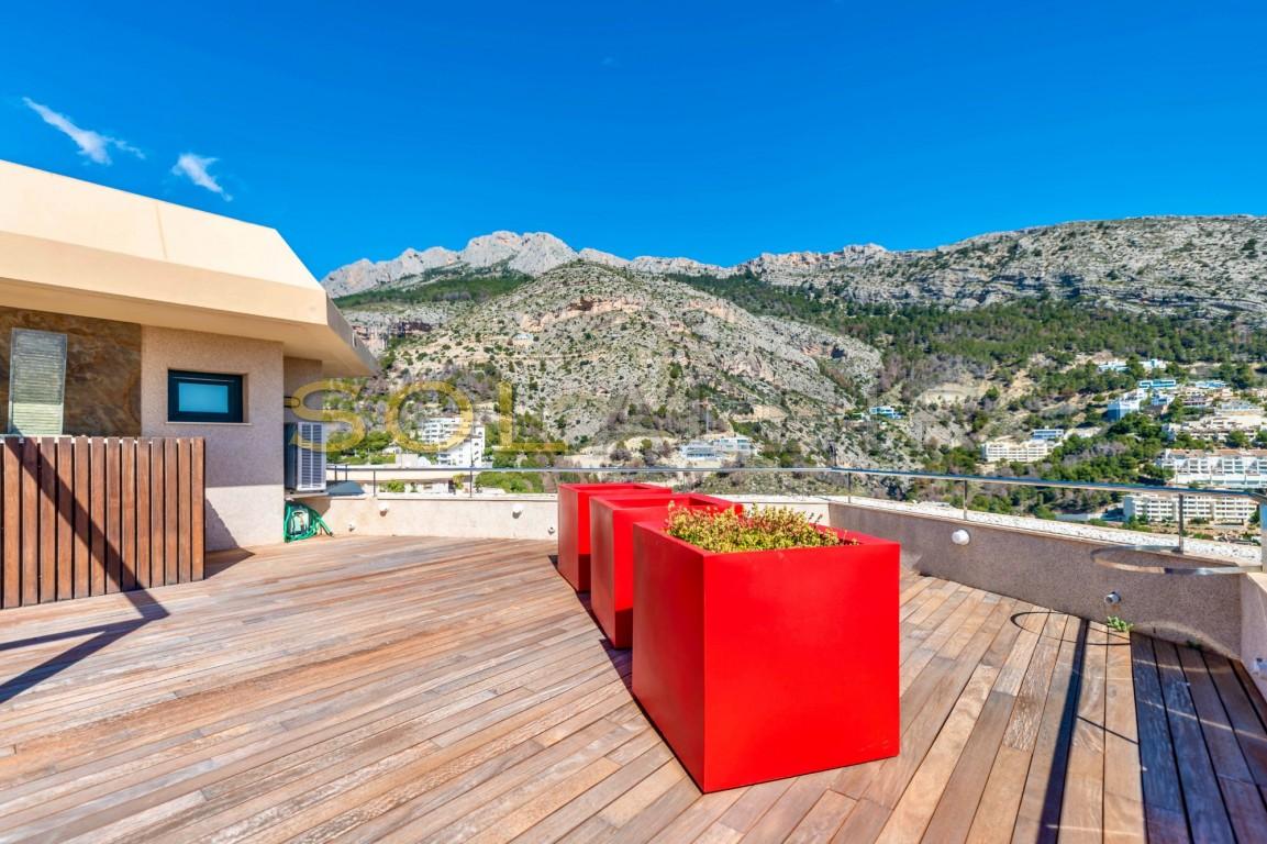 ÁTICO DÚPLEX EN ALTEA CON TERRAZAS GIGANTESCAS E IMPRESIONANTES VISTAS AL MAR EN UN COMPLEJO DE APARTAMENTOS DE LUJO.