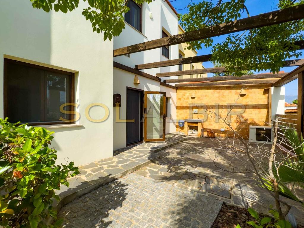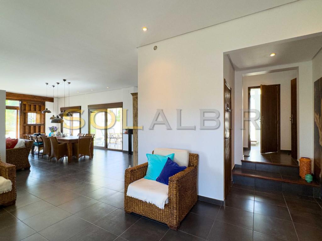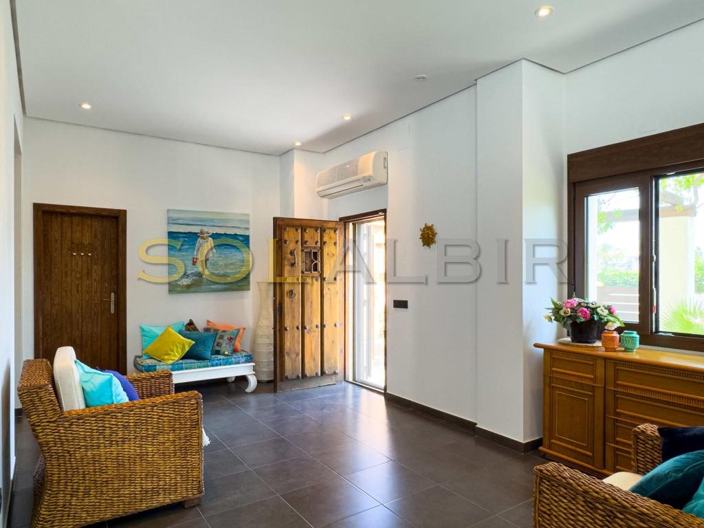 El diseño y la atmósfera de la casa resultan agradablemente estéticos, con fachadas en tonos blanquecinos suaves y elementos de madera tradicionales que le confieren carácter. El interior de la villa se distribuye en dos plantas: la planta superior cuenta con cuatro dormitorios , mientras que la planta baja dispone de una versátil sala multiusos, ideal para invitados o como despacho.
