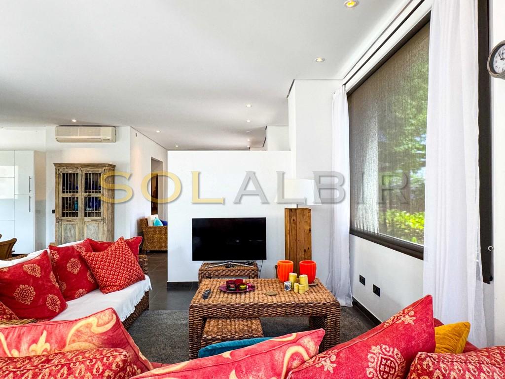 La zona de estar impresiona por sus techos de doble altura , abundante luz natural y acceso directo a acogedoras terrazas y a la piscina privada , para disfrutar también de la vida al aire libre.