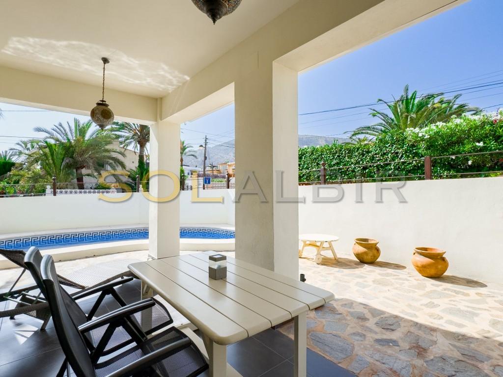 Encantadora villa adosada, con el encanto de las villas independientes, en una ubicación inmejorable en la zona baja de Albir, a pocos pasos de la calle principal y a 920 metros de la playa . Esta propiedad se encuentra en una codiciada zona residencial céntrica de Albir. Podrá ir andando a tiendas, restaurantes, el mercado semanal y la playa, disfrutando de un ambiente tranquilo y privado.
