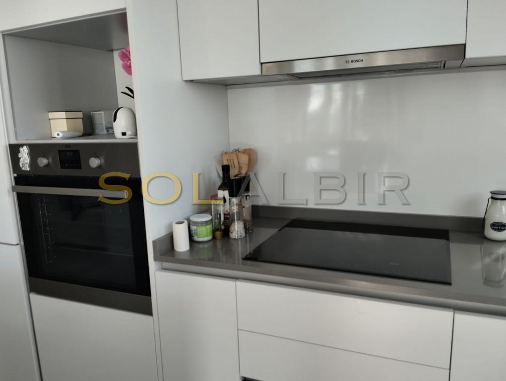 Apartamento en venta con vistas al mar y al magnífico skyline de Benidorm, en una prestigiosa torre de obra nueva en el barrio de Poniente de Benidorm. La vivienda hace esquina y cuenta con una amplia terraza soleada todo el día. La playa de Poniente está a 1 km.