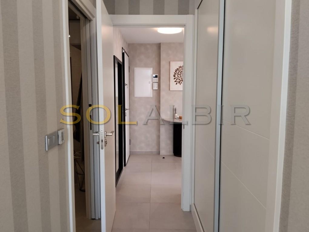 Se trata de un piso de lujo de tres dormitorios y dos baños. Tiene 155 m² y es de nueva construcción. Cuenta con cocina americana totalmente equipada, salón-comedor, despensa, trastero y plaza de aparcamiento. Dispone de jardines, piscinas, pistas de pádel, gimnasio y parque infantil.