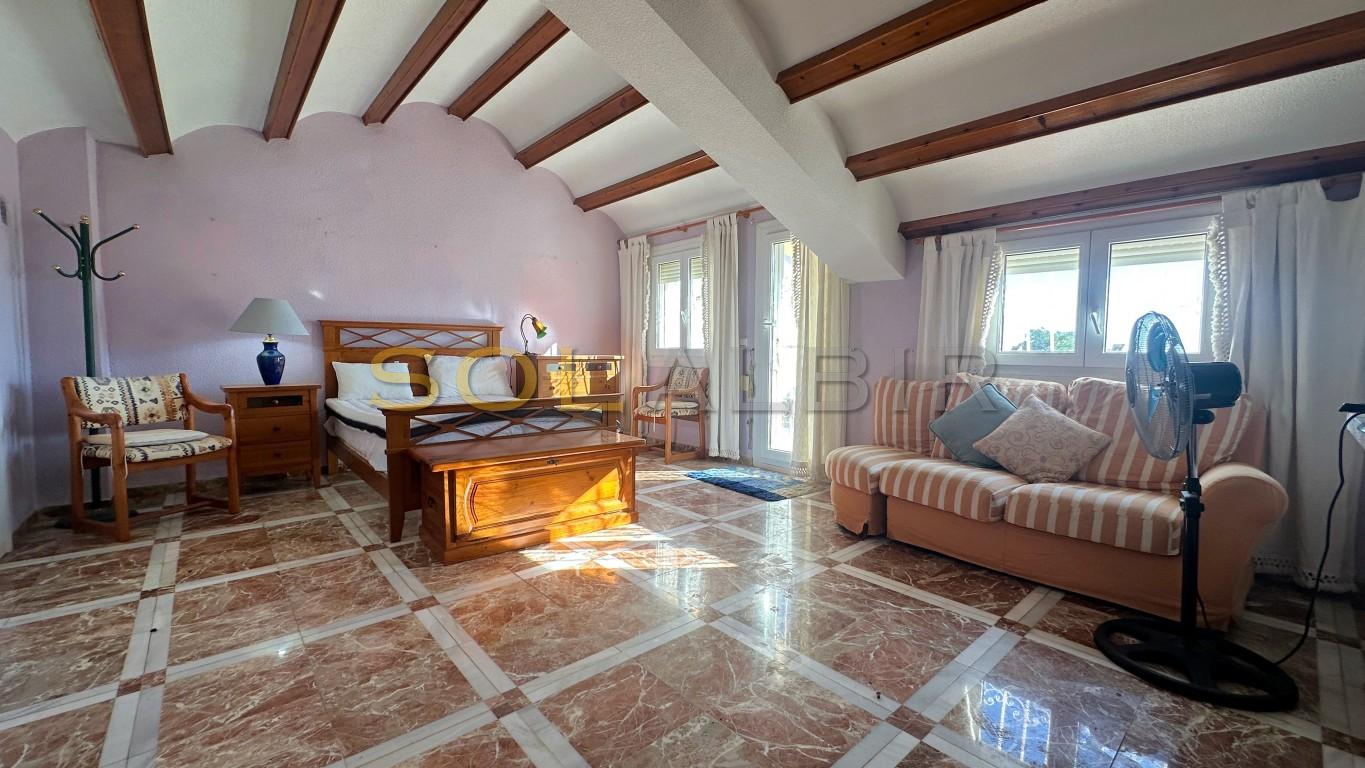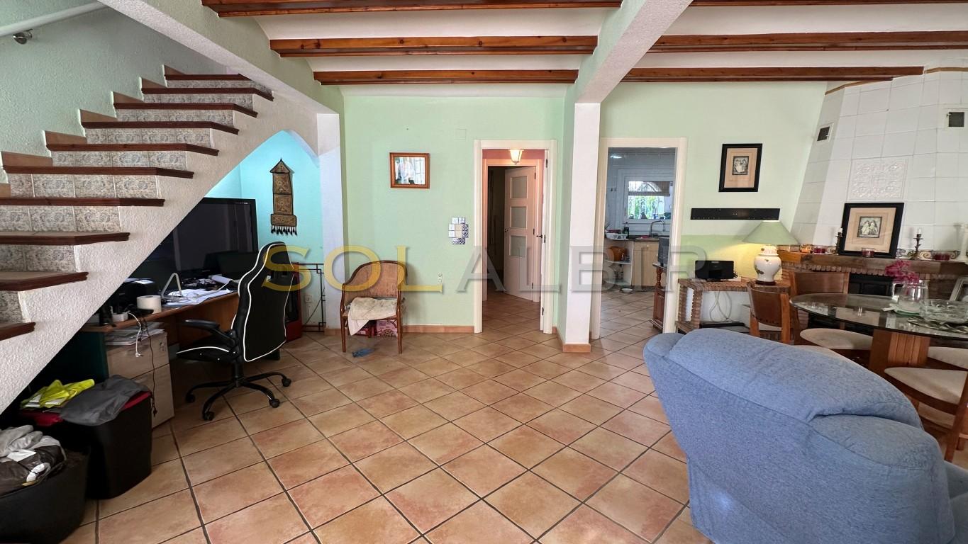 Si buscas un lugar soleado y unos ingresos regulares, ¡esta es tu oportunidad! A 500 m de Albir encontrarás esta casa unifamiliar con apartamento de invitados. La casa principal tiene en la planta baja una terraza orientada al sur, un amplio salón-comedor con chimenea, una cocina de buen tamaño con lavadero independiente conectado al jardín. También un dormitorio y un baño. En la primera planta hay un dormitorio grande (antes eran dos) con baño en suite y una terraza con vistas al mar. En la planta baja, hay un apartamento de invitados con salón-cocina, dormitorio y un baño amplio. El alquiler es de 600 € al mes. El buen inquilino prefiere quedarse, pero, por supuesto, se irá cuando quieras. Junto a este apartamento hay un garaje. Hay piscina comunitaria disponible. Llama para visitar esta casa canguru.