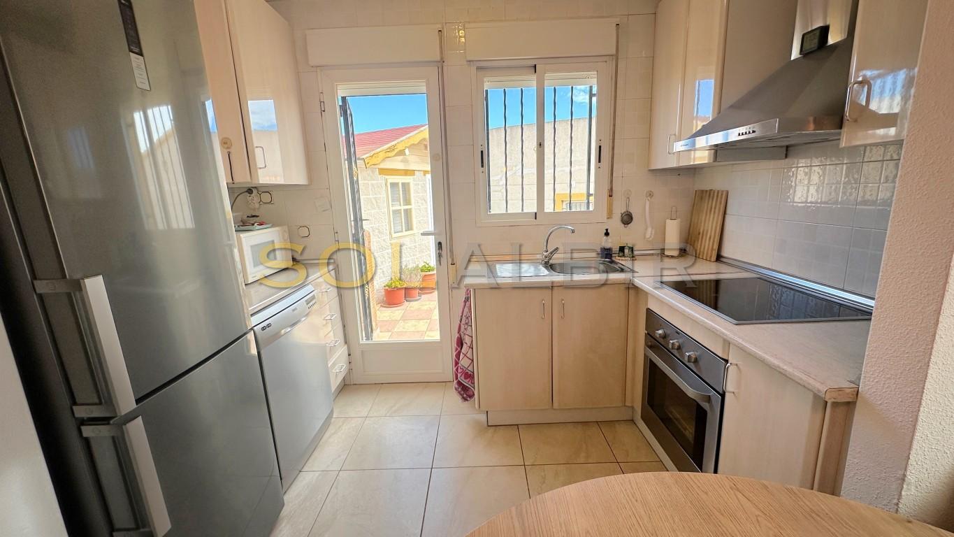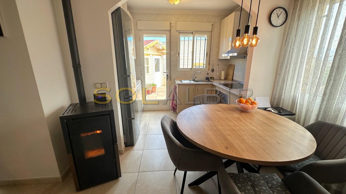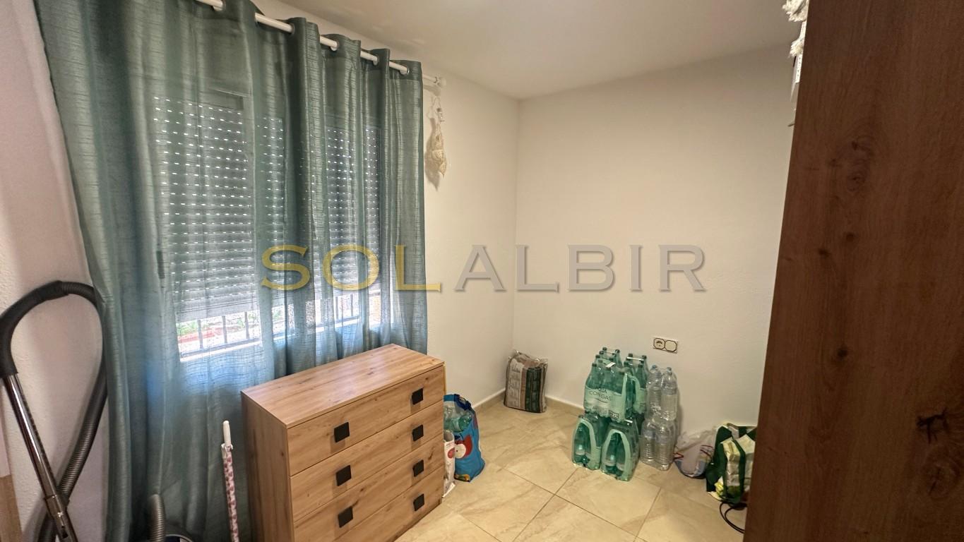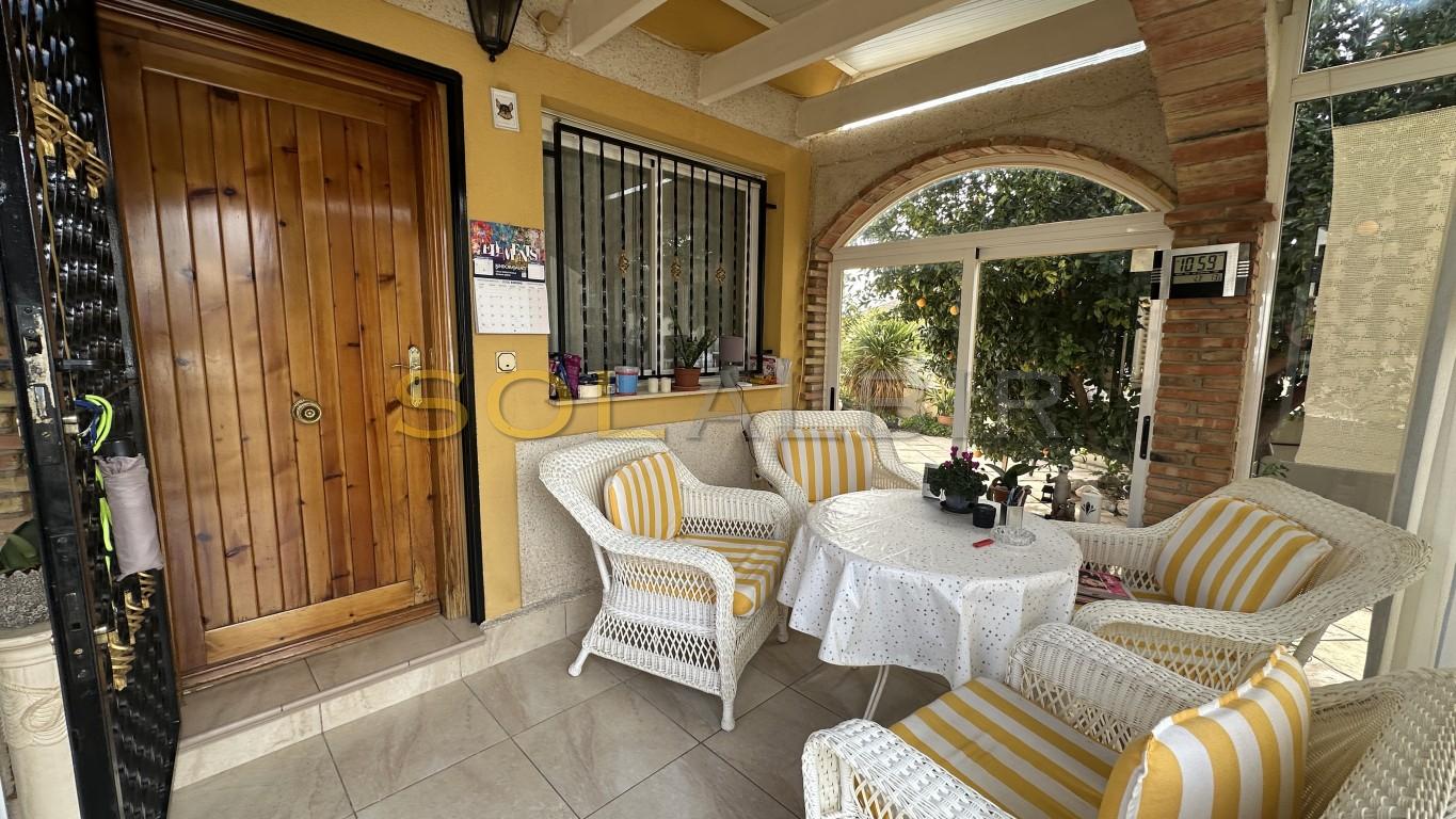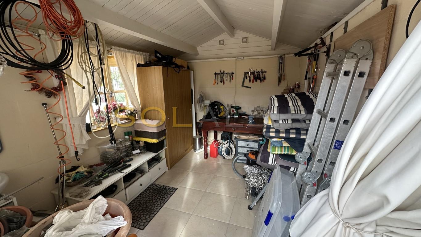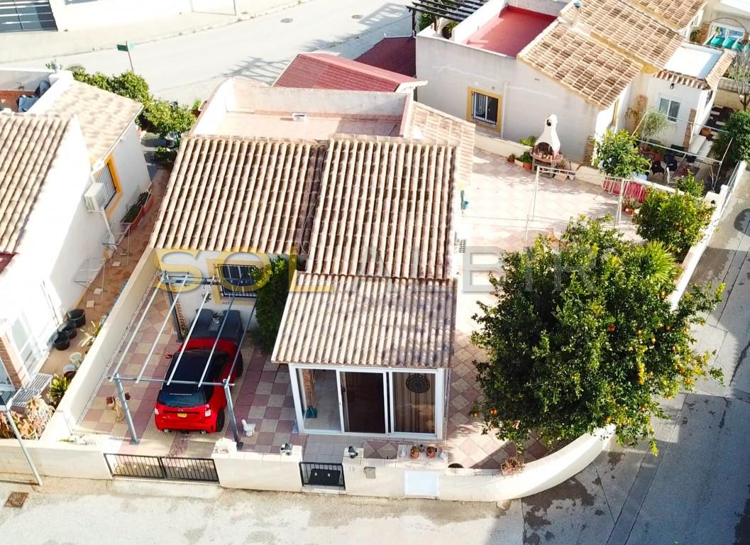 Una soleada villa de dos dormitorios en una parcela esquinera. En la entrada hay una terraza orientada al sur (para el invierno). Desde aquí se accede al salón con cocina abierta y salida al amplio jardín y terraza. Hay dos dormitorios y un baño. En el exterior hay un cobertizo de jardín que ahora se utiliza como estudio, aunque antes era un tercer dormitorio de invitados. Se puede aparcar el coche en la parcela. Frente a la casa se encuentra la piscina comunitaria. Una urbanización bonita y tranquila. ¡Le encantará! ¡Llame para visitarla!