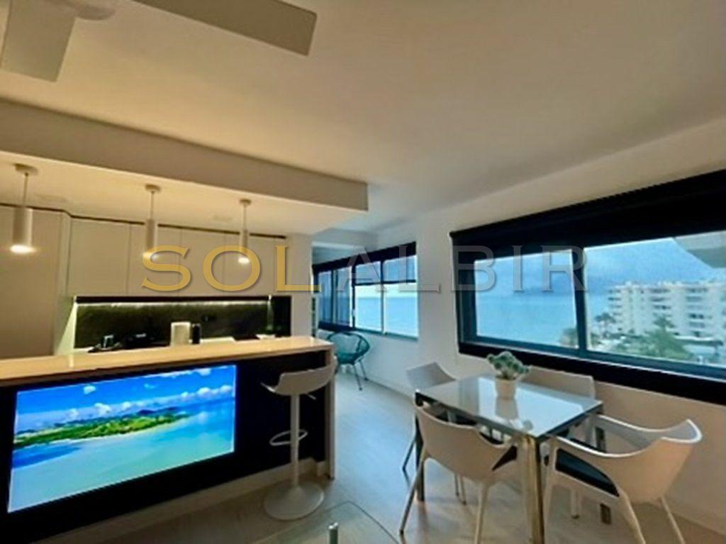 Apartamento de un dormitorio en venta frente al mar en la playa de La Olla, Altea. Tiene 65 m² y ha sido reformado. Todas las estancias son muy luminosas y cuentan con cortinas que filtran la luz y aire acondicionado. Cocina totalmente equipada con electrodomésticos de alta gama, con barra americana que da al luminoso salón. También cuenta con un amplio salón con espléndidas vistas al mar, un baño reformado con ducha y un amplio dormitorio con cama doble y ventanal con vistas al mar. Tiene acceso directo a la playa. Dispone de alarma y cerradura inteligente. El apartamento tiene licencia de alquiler vacacional. Es ideal para quienes aman el sonido del mar, que tiene un efecto mágico y relajante. Es muy cómodo y ofrece espectaculares vistas al mar desde cada rincón.