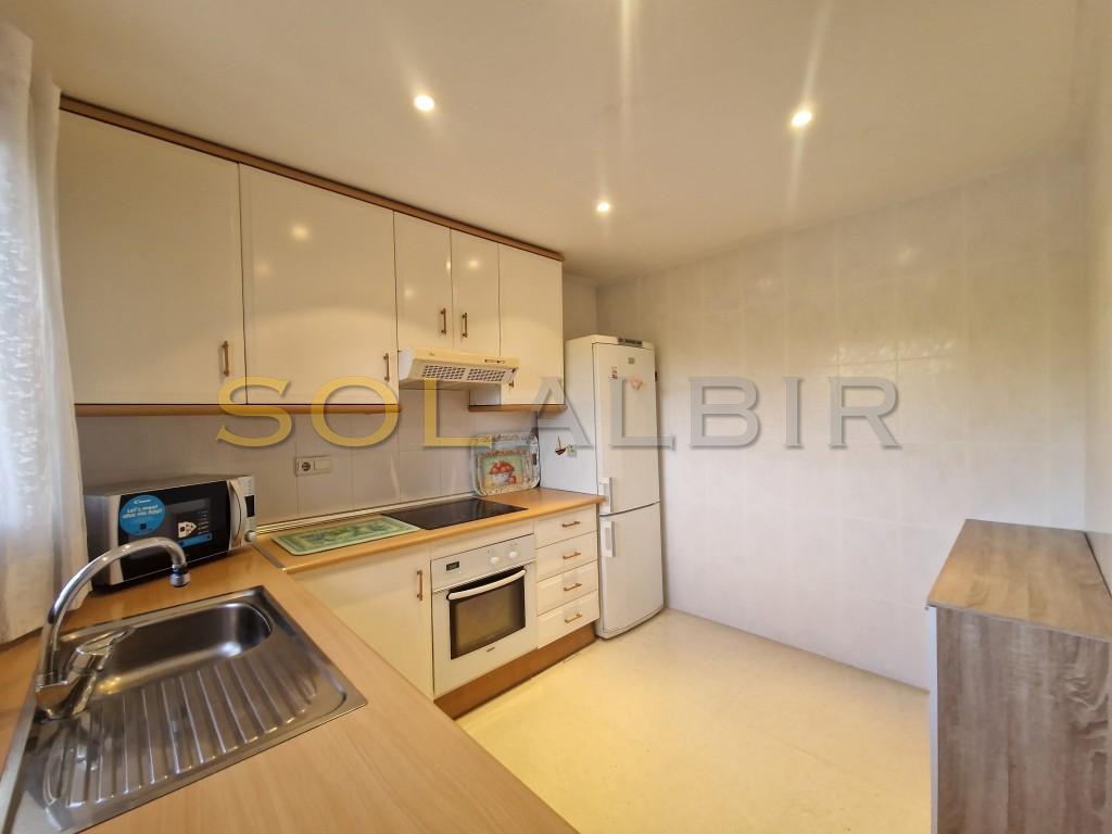 Esta propiedad absolutamente exclusiva destaca por su confortable diseño, con una superficie de 80 m², ideal tanto como primera o segunda residencia, o incluso como inversión. Dispone de 1 dormitorio muy amplio con vistas despejadas al mar, y un salón con su terraza (también con vistas muy abiertas al mar y a la ciudad). La cocina, totalmente amueblada y equipada, cuenta con placa de inducción, horno, microondas, lavavajillas, nevera, lavadora y secadora. Ofrece vistas a la montaña y cuenta con un práctico lavadero. La casa dispone de aire acondicionado frío/calor por conductos. El agua caliente sanitaria se produce mediante gas ciudad. Además, los armarios empotrados, distribuidos en diferentes estancias, ofrecen un espacio de almacenamiento óptimo. La urbanización ofrece excelentes zonas comunes pensadas para el bienestar y disfrute de sus residentes: amplias zonas ajardinadas con césped natural y arbolado, una gran piscina tipo lago, pista de tenis, sauna, gimnasio equipado con diversas máquinas y zona infantil. El aparcamiento exterior es amplio y está equipado con cámaras de videovigilancia para mayor seguridad. Situada a solo 5 minutos a pie de la playa, con todos los servicios y transporte público al alcance, esta propiedad es ideal para quienes valoran la exclusividad, el estilo y un alto nivel de calidad de vida.