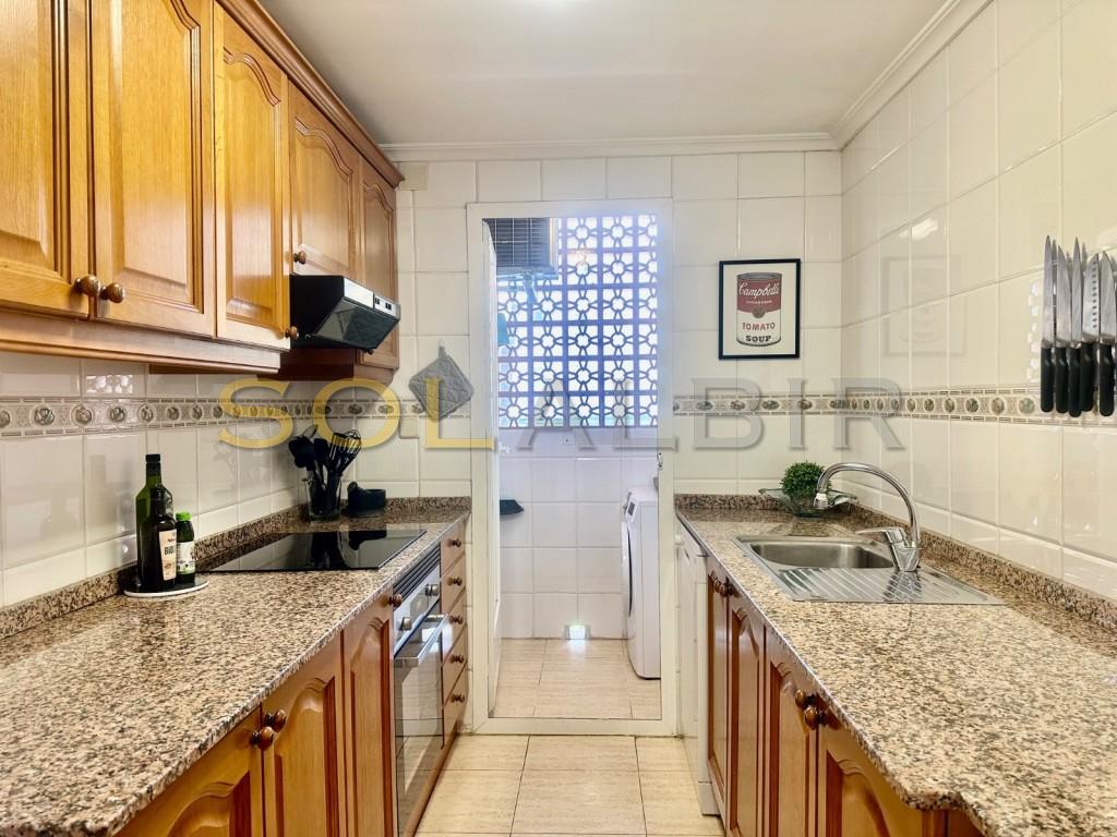 ALTA CALIDAD - APARTAMENTO ESQUINERO DE 3 DORMITORIOS CERCA DEL MAR. Este encantador apartamento de 88 m² construidos cuenta con 3 amplios dormitorios y 2 baños, ambos modernizados con suelo radiante y ducha, uno de ellos en suite con el dormitorio principal. Dispone de cocina independiente con lavadero y un acogedor salón con salida a un balcón acristalado de unos 8 m² con vistas al jardín comunitario con piscina. Aire acondicionado frío/calor. El precio incluye una plaza de garaje con trastero. El apartamento está parcialmente amueblado y cuenta con electrodomésticos. Jardín comunitario con piscina. A poca distancia de la playa y del precioso paseo marítimo, así como de tiendas, restaurantes y transporte público.