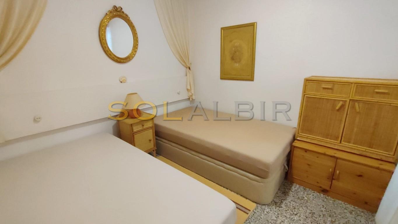 OPORTUNIDAD ÚNICA PARA UN APARTAMENTO DE 1 DORMITORIO CERCA DE LA PLAYA. El apartamento está en la 3ª planta de un edificio a tan solo 100 m de la playa, a poca distancia a pie de tiendas y restaurantes. Dispone de salón con zona de comedor y balcón acristalado, cocina americana modernizada con frigorífico, congelador y cocina de gas nuevos. Hay un dormitorio con dos camas (con espacio de almacenamiento debajo), armario empotrado y un pequeño trastero, además de un calentador de agua nuevo. El baño está modernizado con ducha, calefacción por suelo radiante y lavadora nueva. El edificio no tiene ascensor. La urbanización cuenta con piscina comunitaria con terraza cubierta, aparcamiento comunitario y trastero con acceso desde el aparcamiento. También hay un cuarto comunitario para guardar bicicletas.