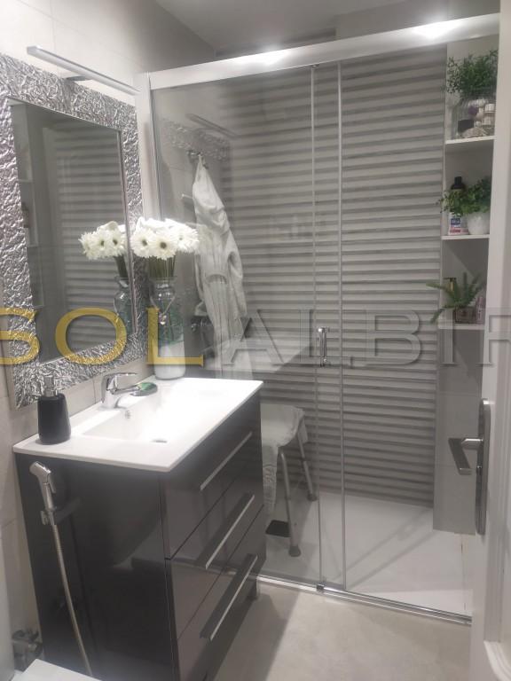 El piso se encuentra en la quinta planta de un edificio de gran altura, en la fachada exterior, con vistas al mar y a la ciudad. Está muy cerca de la playa de Levante y de todos los servicios necesarios. Para más información o para visitar el piso, llame a nuestra oficina.