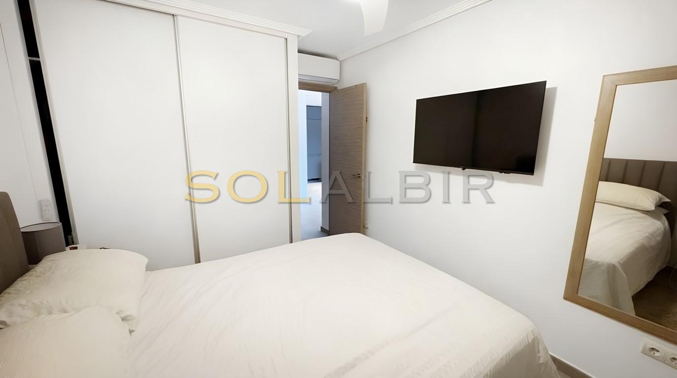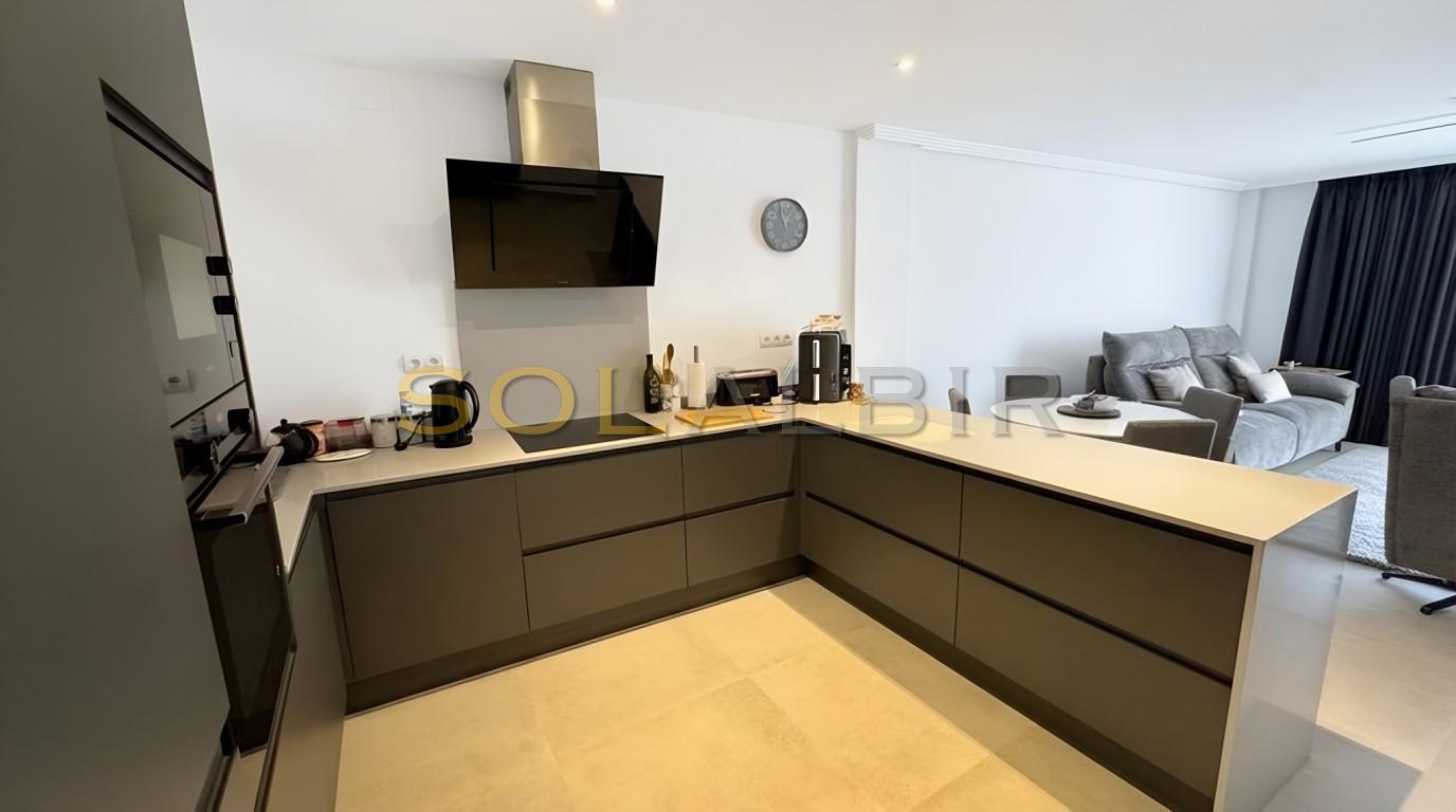 El apartamento ha sido completamente renovado y redistribuido con esmero, combinando comodidades modernas con muebles de buen gusto y de alta calidad en todas las estancias.