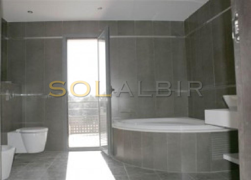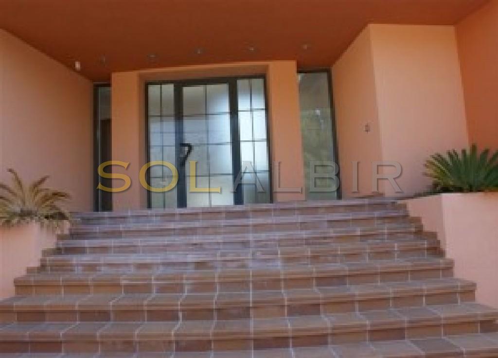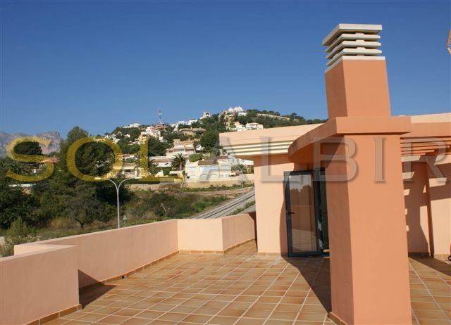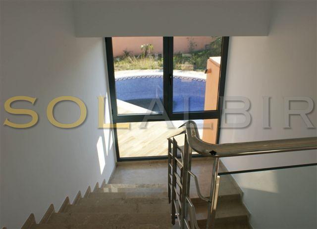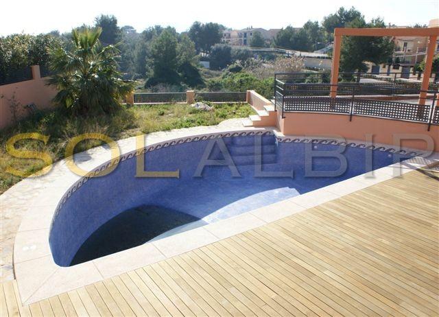 MODERNO CHALET DE LUJO CON 9 DORMITORIOS EN ALFAZ DEL PI. En la planta principal hay un salón muy amplio con chimenea, una cocina, un aseo y una extensión con varios dormitorios y el jacuzzi. En la planta baja estan 6 dormitorios, dos baños, un aseo, la cocina y un almacén. Como tambien hay una entrada separada, podría ser utilizado como oficina ó otro apartamento. Toda la casa viene con calefacción del suelo y aire acondicionado individual. La piscina de 10 x 6m yun garage para 4 coches.