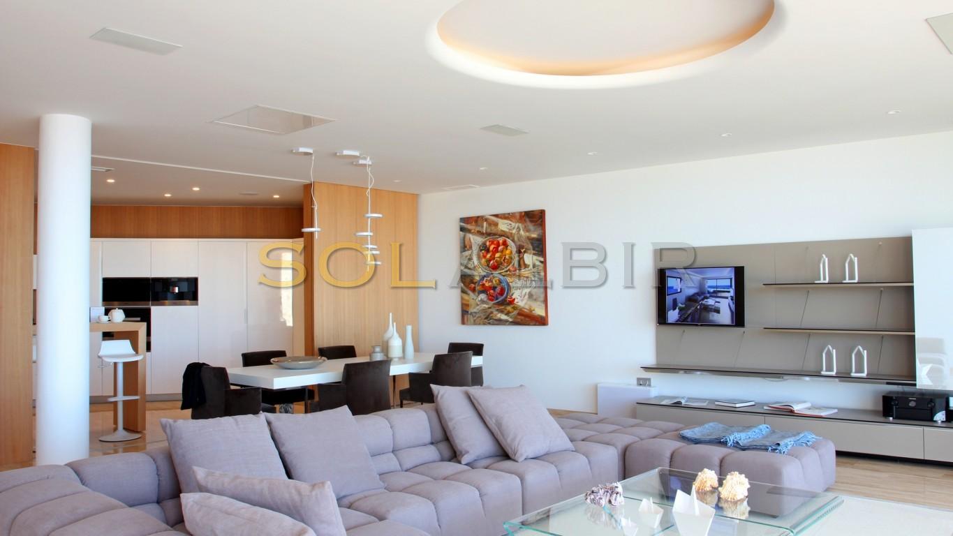 Ocean Suites Altea es una urbanización privada de 13 apartamentos de lujo con impresionantes vistas extraordinarias ubicados en una de las zonas más codiciadas y privilegiadas de la Sierra de Altea. Equipado con espectaculares terrazas, con vistas panorámicas inigualables sobre la bahía de Altea, incluyendo la Isla de Altea, Altea La Vella, Benidorm, El Albir, etc. Los apartamentos tienen una superficie de entre 575sqm y 900sqm construidos y unos 2230m² aprox de vivienda cerrada, con terrazas de 120m² hasta 300 metros cuadrados. El diseño interior, el resultado de un proyecto llevado a cabo por profesionales arquitectos y decoradores, hará que sus sueños se hagan realidad. Cada apartamento tiene un total de tres dormitorios, equipados con grandes armarios empotrados, 2 baños y un aseo. El dormitorio principal de aproximadamente 51m² tiene un walk-in-armario y un amplio baño en suite, con ducha y bañera independiente. Los otros 2 dormitorios comparten un baño muy grande, con una ducha a ras de suelo, doble lavabo y bañera. Los 3 dormitorios tienen acceso directo a la terraza donde puedes disfrutar de fantásticas vistas al mar. Todos los baños están equipados con sanitarios Duravit, grifos Hansgrohe, revestimiento de la tendencia de la marca italiana y encimeras de Corian. La cocina está equipada de acuerdo con las normas y la calidad de toda la casa, con electrodomésticos Miele y muebles lacados en alto brillo. La sala principal de la propiedad es sin duda el salón-comedor: unos 63m² de espacio donde se encuentran varios ambientes diferentes, que se define por la iluminación exquisita, con una pantalla de proyector que transforma la sala en un cine maravilloso, un luminoso salón con el acceso a una fantástica terraza de más de 53sqm, con un porche espectacular, jacuzzi y fantásticas vistas al mar. SÓLO 1 VIVIENDA DISPONIBLE- OCT.21