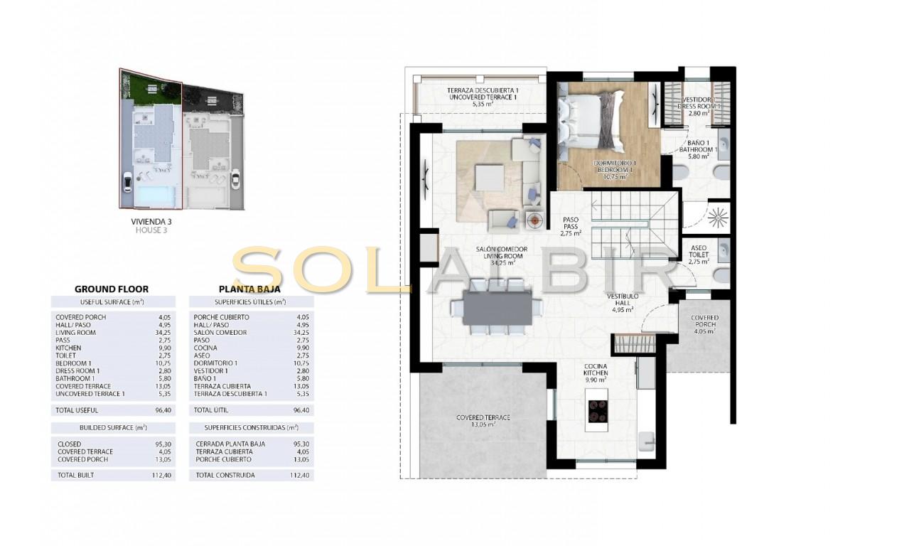 Elk huis met 3 slaapkamers wordt, indien gebouwd, apart verkocht