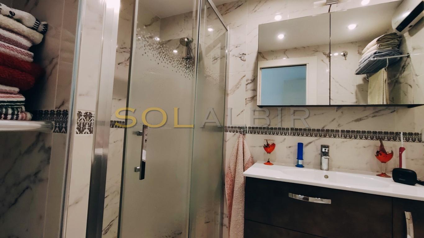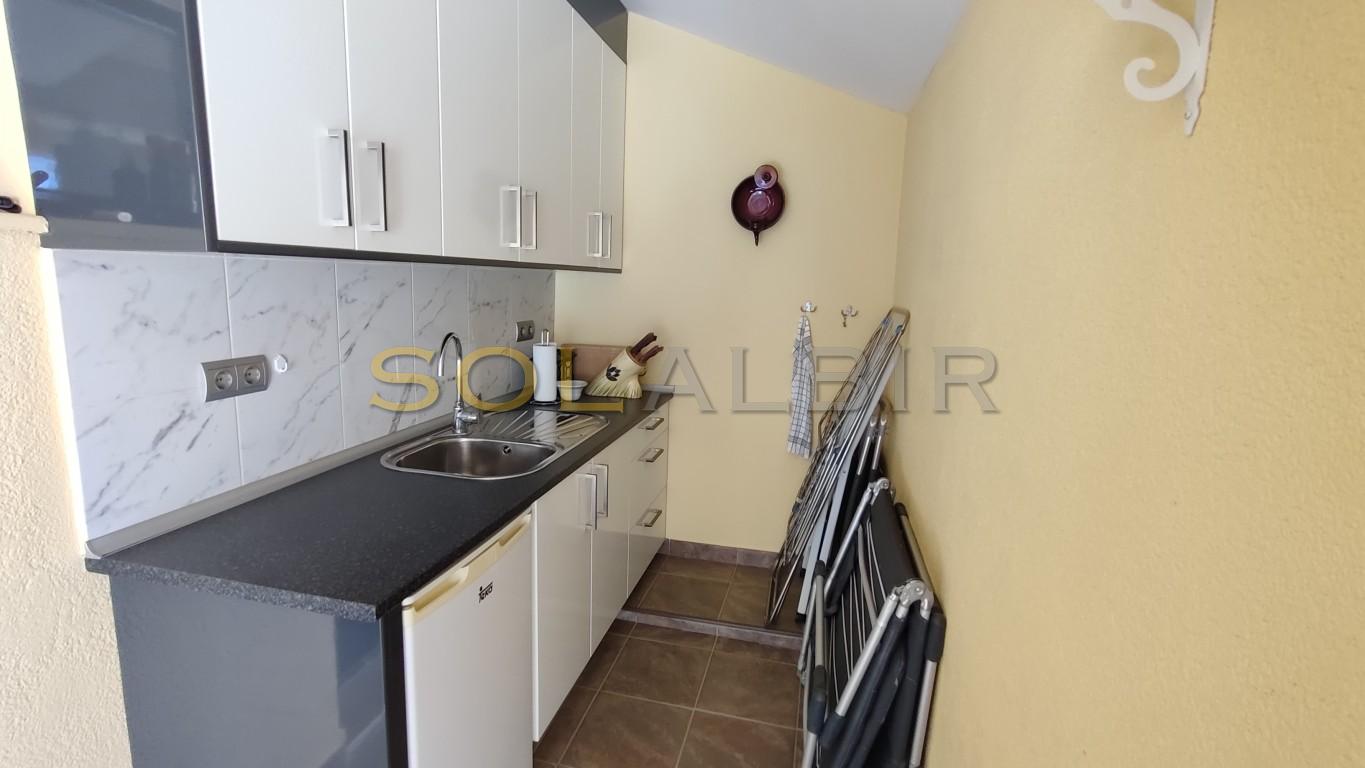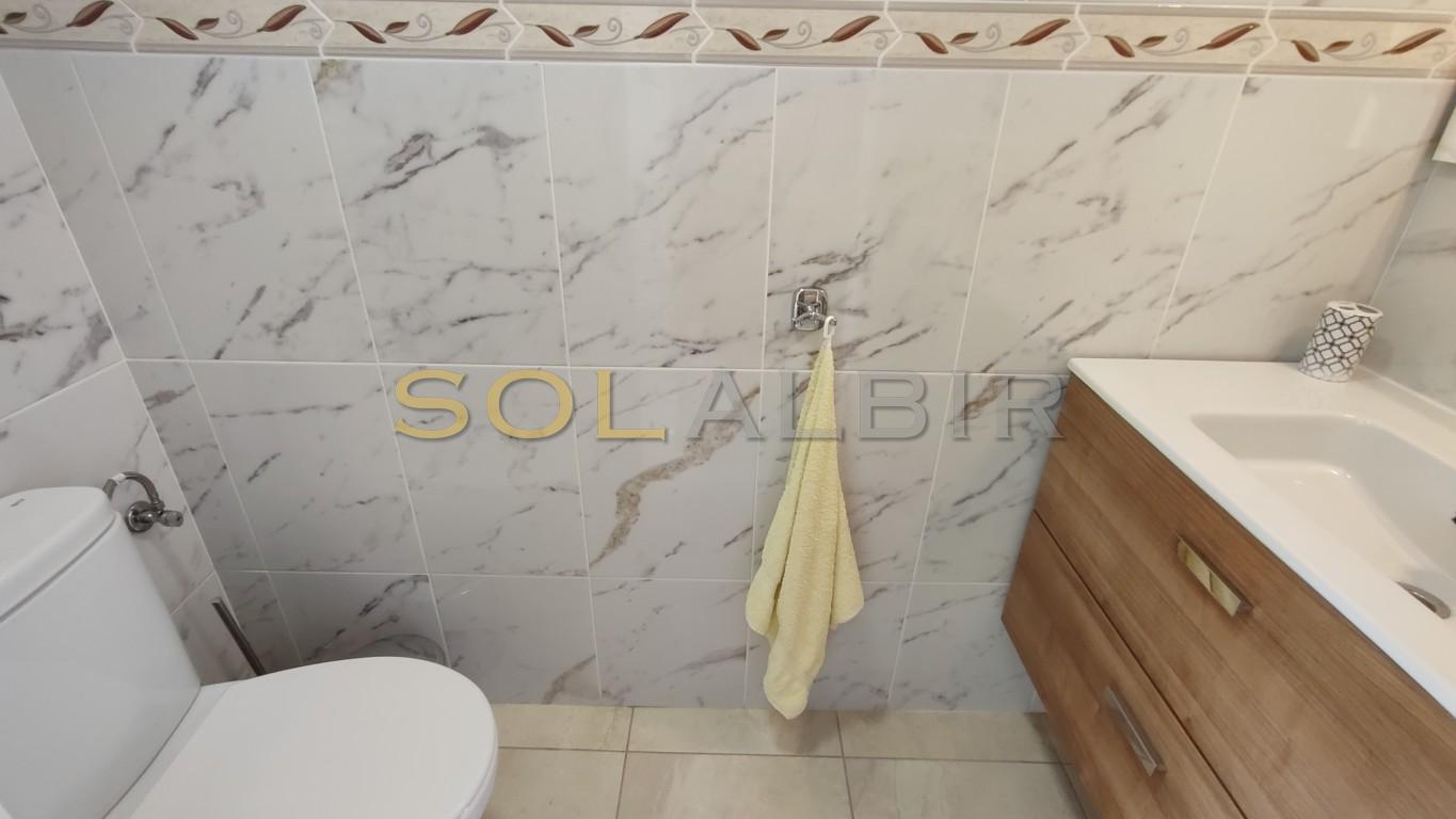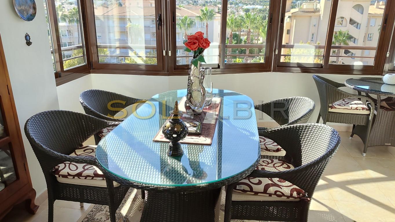 ZONNIG HOEKAPPARTEMENT OP DE BOVENSTE VERDIEPING OP HET ZUIDEN, MET OPEN UITZICHT IN AANTREKKELIJKE URBANISATIE. Het appartement is de laatste jaren gemoderniseerd en heeft een zeer goede standaard. Het is een duplex appartement met ca. 89 m2 in de woonkamer incl. een balkon en een gedeeltelijk overdekt dakterras, dus in totaal ca. 130 m2 in het appartement incl. terrassen. Op de begane grond is er een zeer lichte woonkamer verbonden met het balkon, dat is beglaasd met open uitzicht op de bergen en de stad. Er is een gemoderniseerde keuken met een galerij ernaast met wasmachine, 2 slaapkamers, waarvan de hoofdslaapkamer toegang heeft tot het balkon en een ensuite badkamer heeft, die is gemoderniseerd, en er is nog een badkamer van goede standaard, beide met douches. Boven is er een mooi ingericht dakterras op het zuiden, er is een zomerkeuken en er is een gastenverblijf met een slaapkamer en een toilet. In de prijs is een parkeerplaats en een afgesloten berging inbegrepen. Er is een prachtige gemeenschappelijke tuin met zwembad, tennisbaan en een speeltuin. Op loopafstand van het strand, winkels, restaurants en openbaar vervoer.