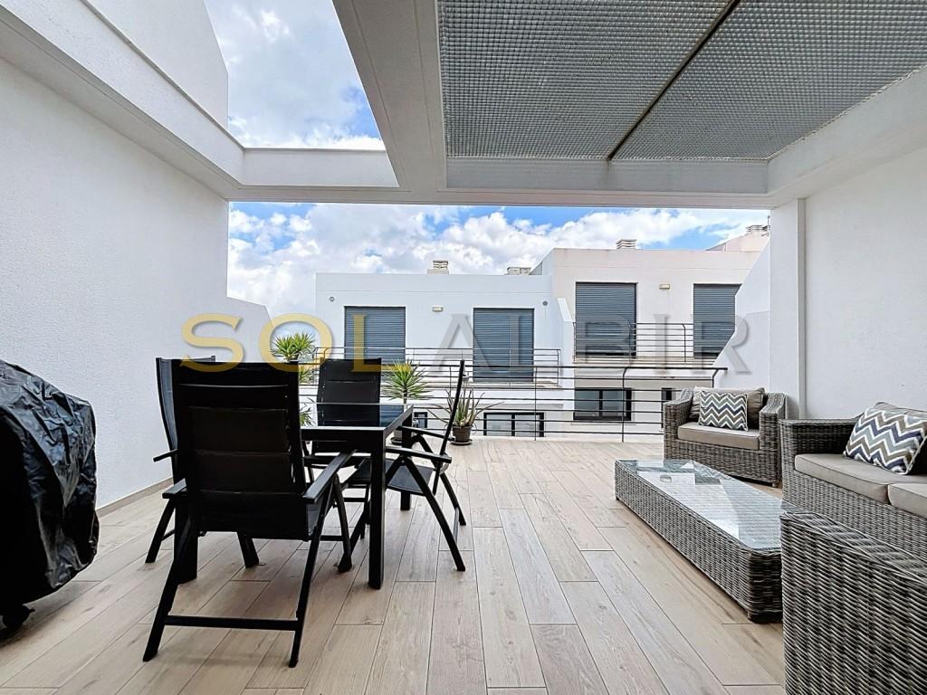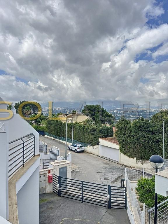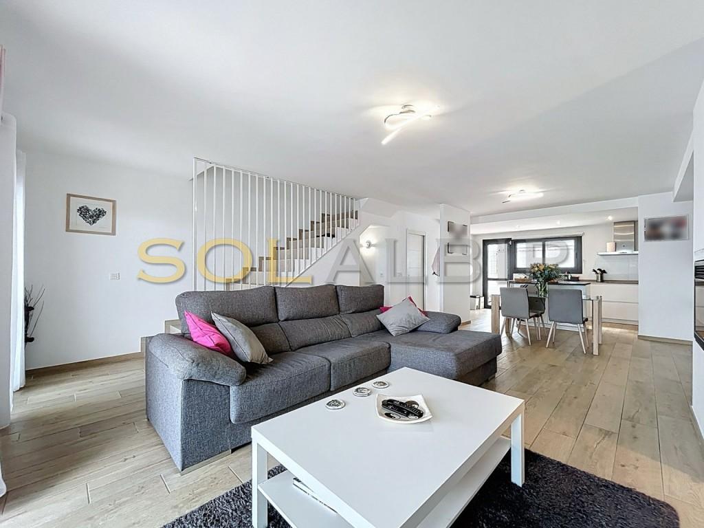 Wij presenteren een onberispelijke en moderne geschakelde woning in een rustige urbanisatie in het bovenste gedeelte van Albir met panoramisch uitzicht op de bergen.