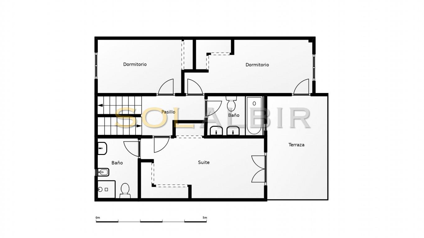 Op de begane grond vindt u een ruime woon-/eetkamer met open keuken, een slaapkamer en een complete badkamer, wat erg handig is. Op de bovenverdieping bevinden zich nog eens drie slaapkamers, allemaal met volledig ingerichte inbouwkasten. De hoofdslaapkamer heeft een en-suite badkamer en directe toegang tot een privéterras.