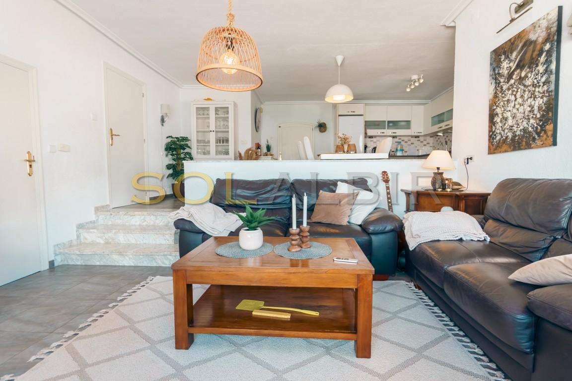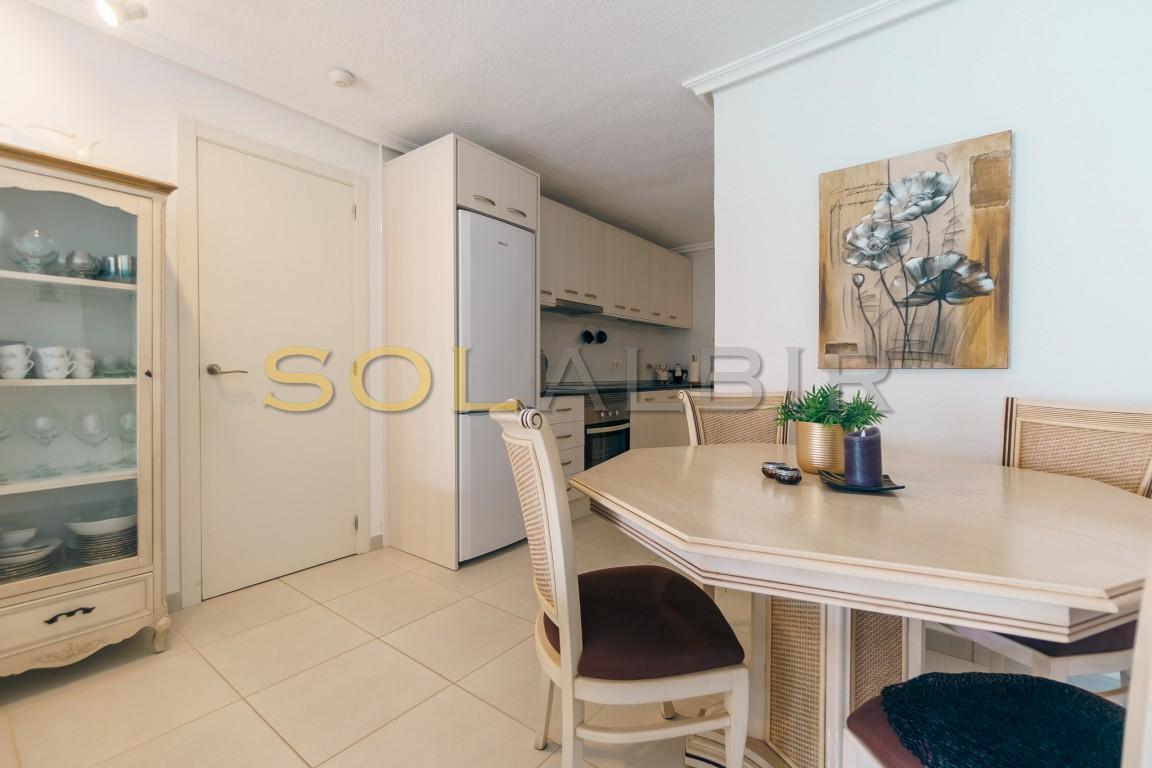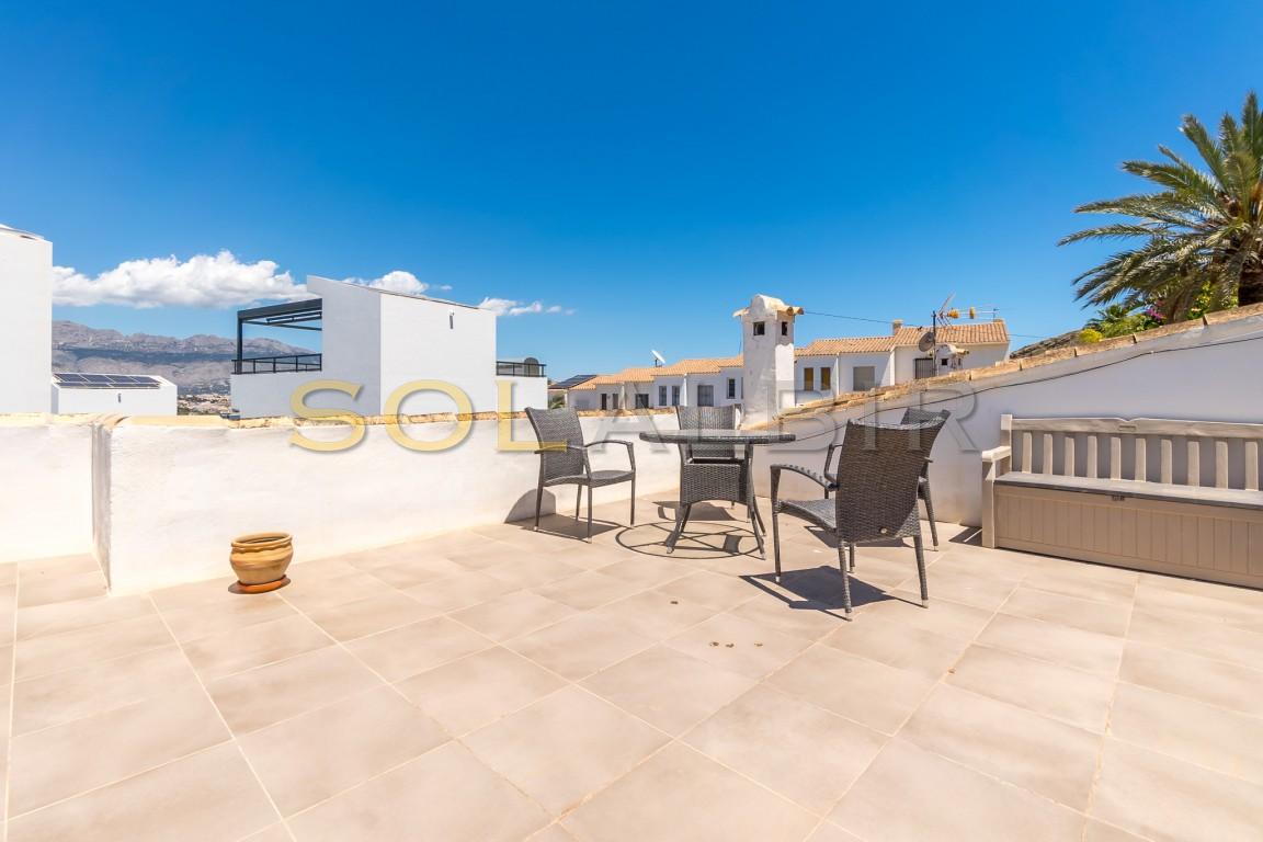 Wij presenteren dit grote, gelijkvloerse pand met een dakterras in een woonwijk van Albir, op slechts 900 m van het strand en 600 m van de hoofdstraat.